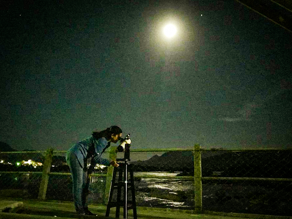 “Sempre gostei de astronomia. Já estive na NASA, durante a graduação, sempre falo sobre isso com os alunos e sou chamada para dar palestras sobre o tema. No Colégio de Aplicação, durante dois anos, tivemos uma eletiva chamada Clube de Astronomia, além de outras atividades. Uma destas foi em 2017, quando colocamos nossos alunos para darem aulas para crianças sobre o novo sistema solar descoberto pela NASA. Eu fui a orientadora dessa aula e inscrevi esse trabalho em um campeonato de professores de várias partes do mundo. O trabalho foi vencedor na etapa nacional e o prêmio foi um telescópio da universidade de Leiden, na Holanda”, lembra Nicolle.