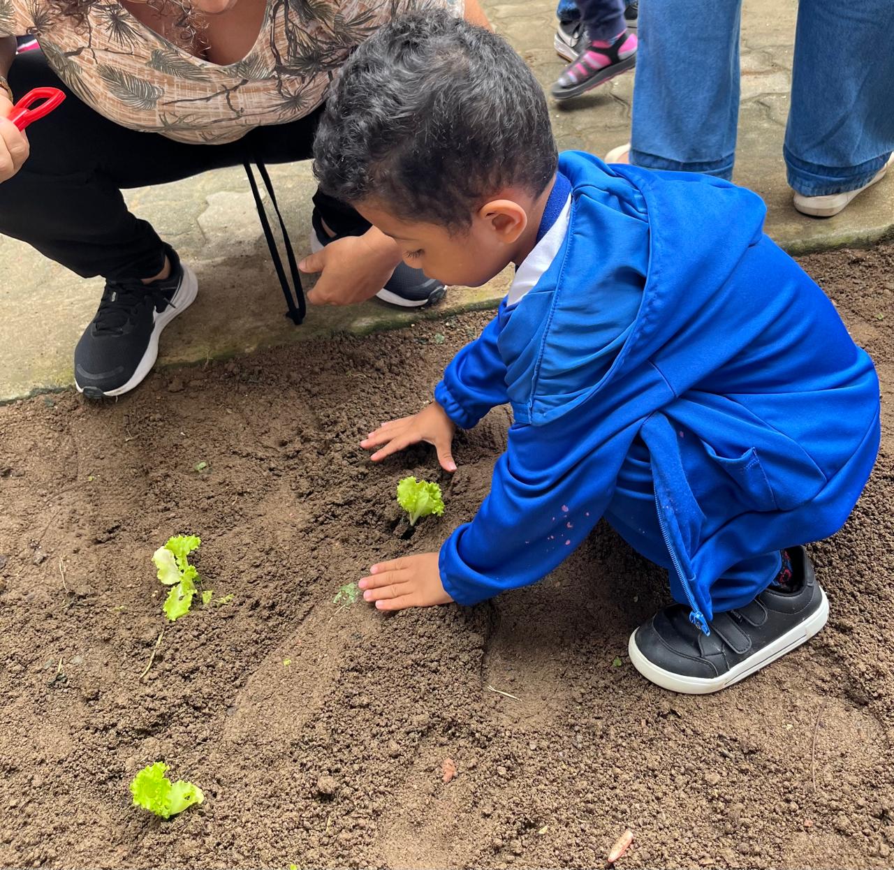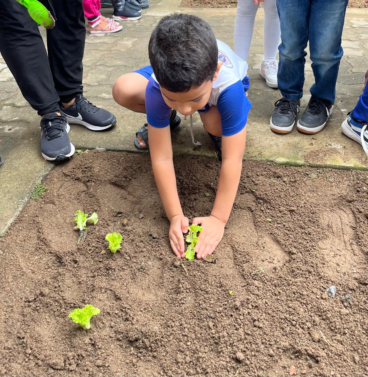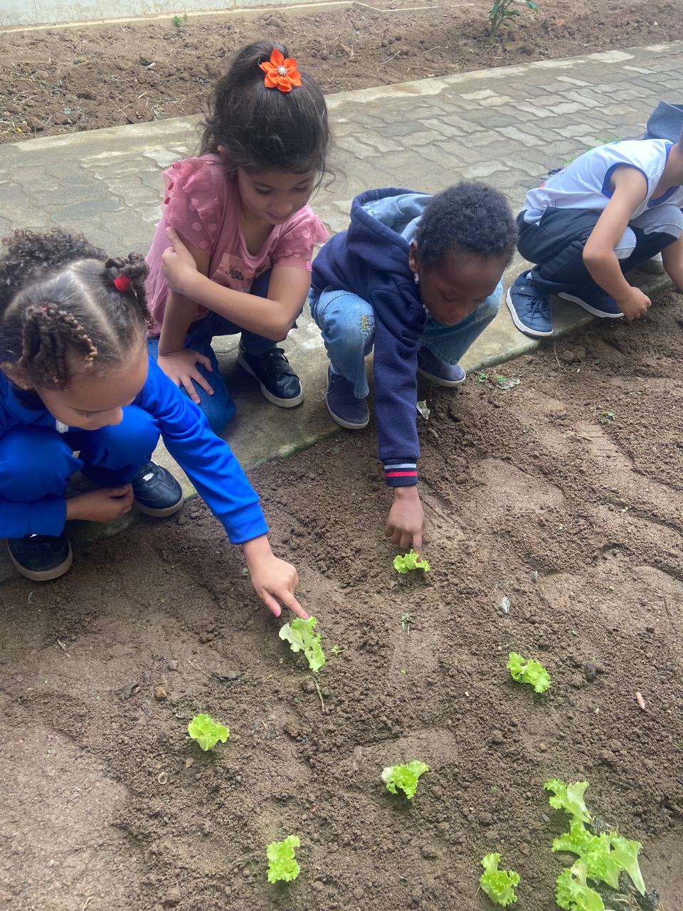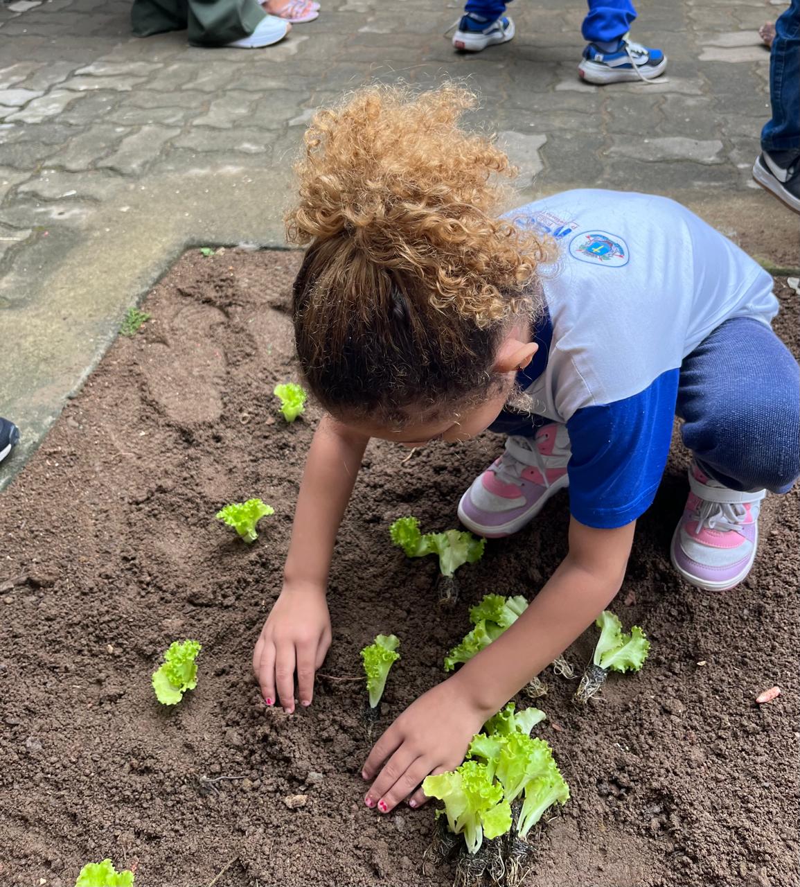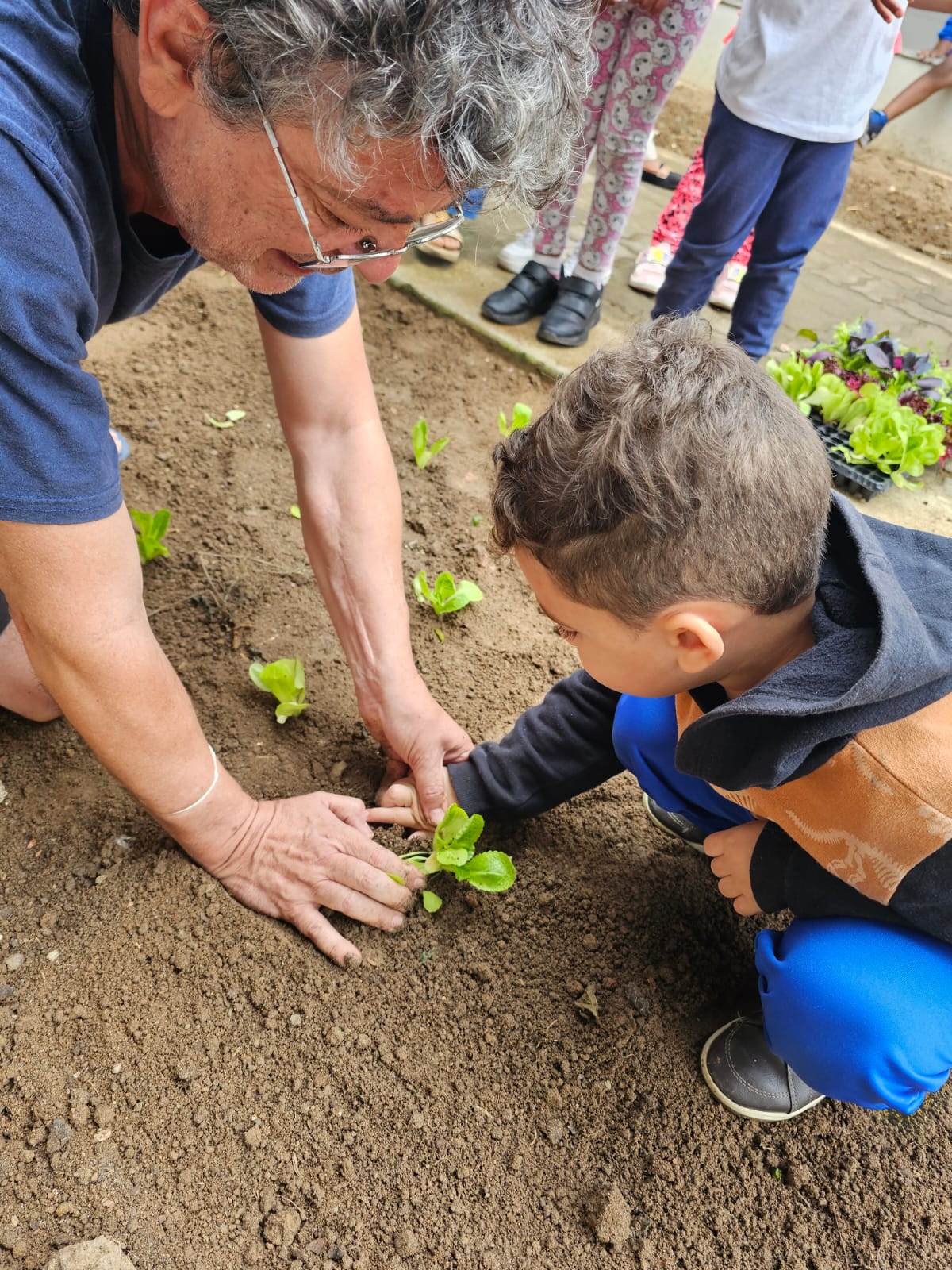 Nesta quarta-feira, uma nova creche recebeu o plantio: a Escola Municipal Zélia de Souza Aguiar, totalizando, atualmente, 10 canteiros comunitários no projeto.