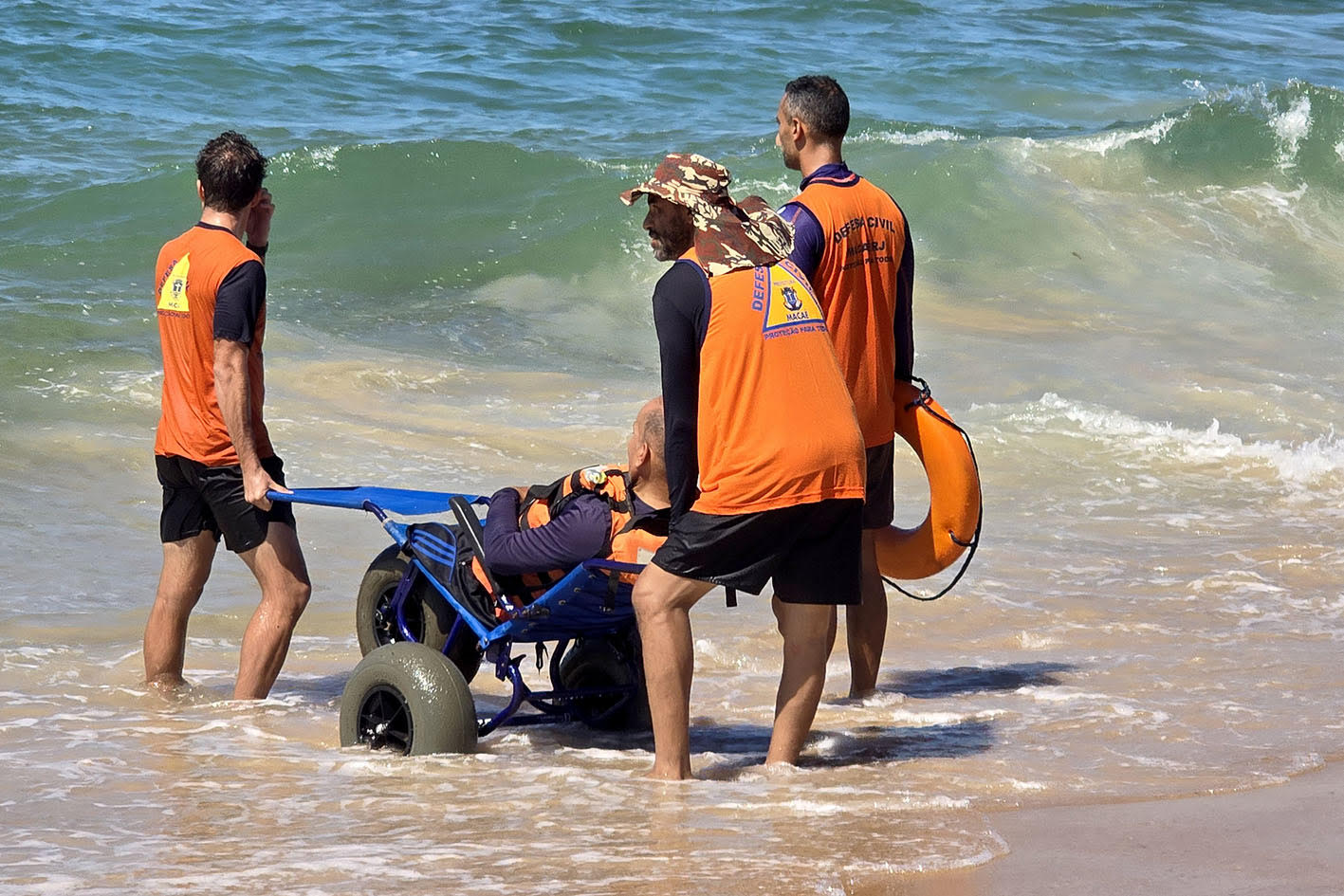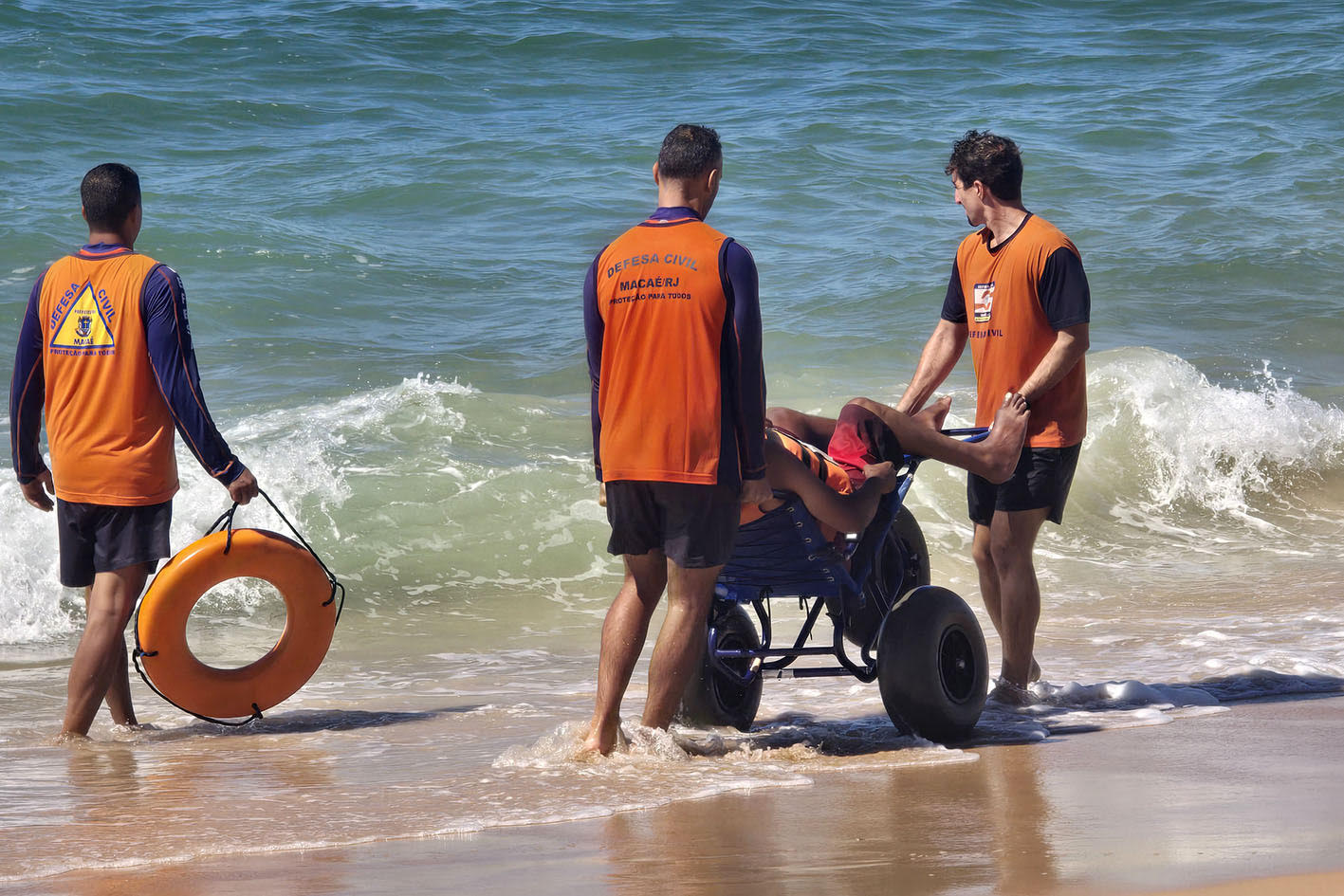 A ação contou com cadeiras anfíbias, que permitem o acesso seguro ao mar, com o apoio de agentes da Defesa Civil e voluntários, devidamente capacitados para auxiliar os participantes durante toda a atividade.