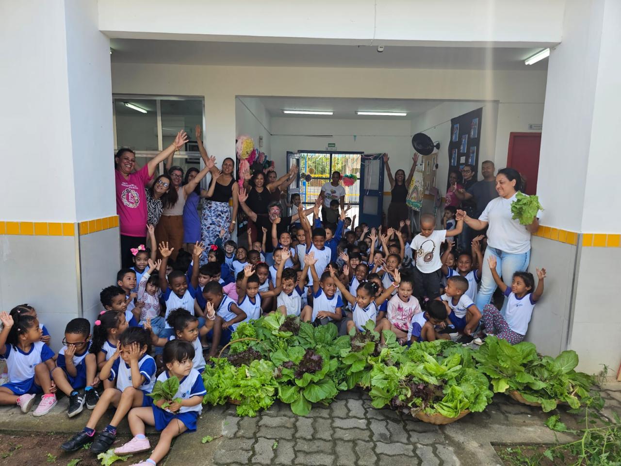 O projeto “Que Mato é Esse?” promoveu a colheita de hortaliças em três unidades de ensino nesta terça-feira (4). As contempladas foram as Escolas Municipais de Educação Infantil Zélia de Souza Aguiar (Malvinas), Professora Ana Cristina Azarany (Lagomar), Professora Maria das Dores Souza Tavares (Morro de São Jorge).