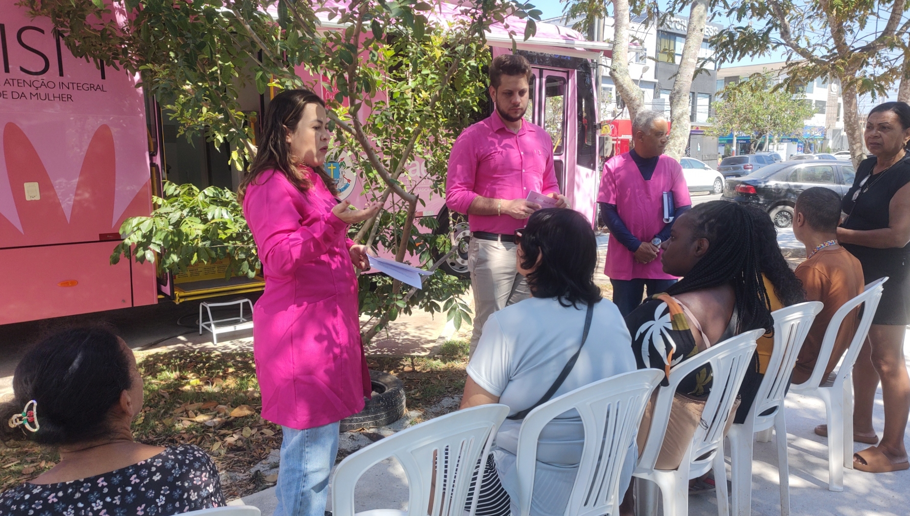 Moradoras do bairro Parque Aeroporto recebem o Ônibus Rosa, que fica até quinta-feira (9), com consultas médicas com clínico geral e de enfermagem, com coleta de preventivo e exames de ultrassonografia. O atendimento acontecerá de 9h às 16h, sem necessidade de agendamento.