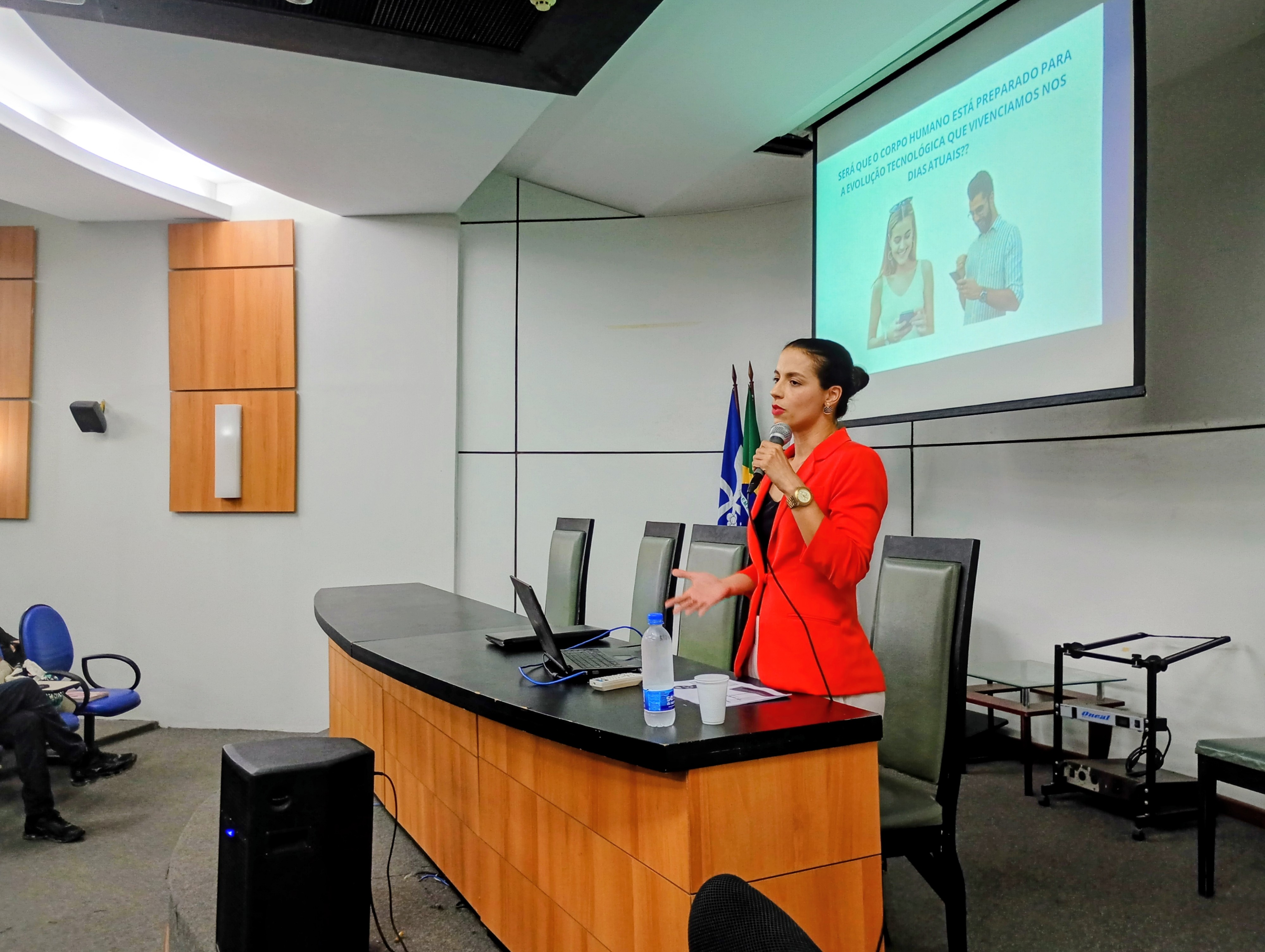 A primeira palestra, A Importância da Ergonomia no Serviço Público, foi conduzida pela engenheira de produção e ergonomista Karina Maltez. Ela explicou que a ergonomia busca alinhar o trabalho humano ao uso da tecnologia, prevenindo danos físicos e promovendo mais qualidade de vida.