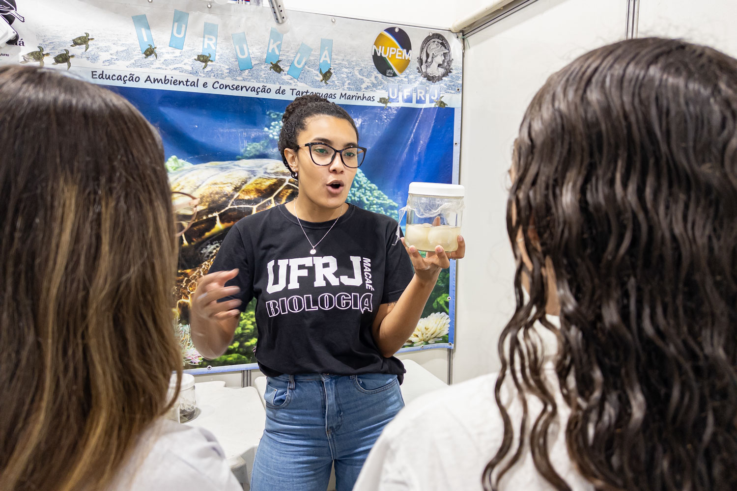 Um dos destaques do primeiro dia foi a palestra do geofísico Sérgio Sacani, especialista nos mistérios do universo. A diretora do Nupem/UFRJ, professora Cíntia Monteiro de Barros, celebrou a participação da universidade com mais de 50 projetos de extensão: “Estamos mostrando a todos o que produzimos em termos de pesquisa e extensão para toda a cidade. Este evento tem uma importância enorme para a ciência”.
