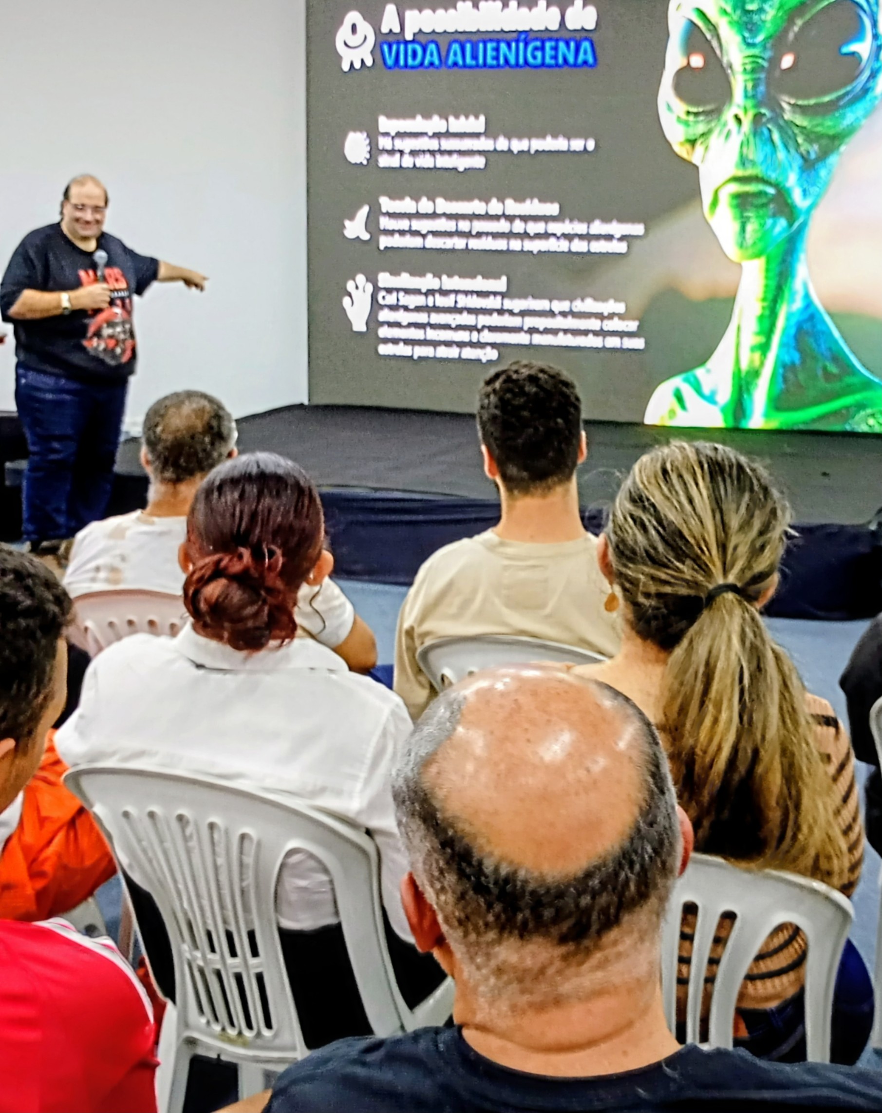 O palestrante mostrou também imagens de Marte e informou que o astrônomo, Giovanni Schiaparelli, que afirmou ver o planeta, havia se enganado por conta do defeito das lentes do telescópio usado por ele. “Tudo o que a gente sabia sobre Marte até 1960 estava tudo errado”, disse.