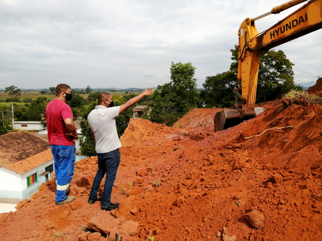 Uma das ações é a escavação e retirada de barro de um morro que está localizado atrás de quatro construções da Prefeitura: a escola municipal, o posto de saúde, a cozinha-escola do produtor rural e o curral comunitário. O barranco tem uma média de 5 metros de altura e está sendo rebaixado para não causar transtornos com um iminente deslizamento.
