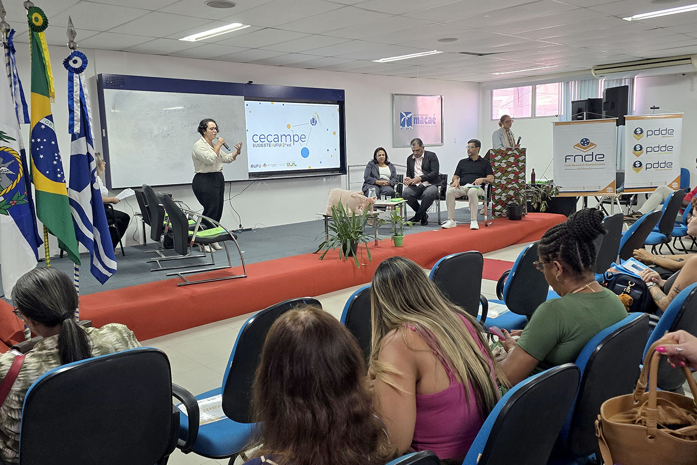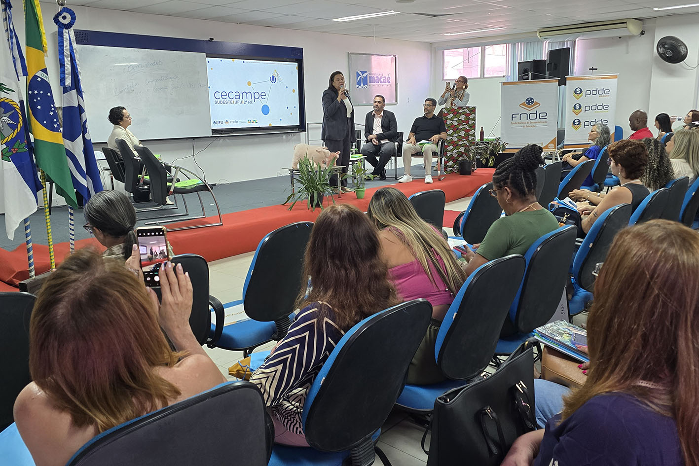 O auditório esteve lotado nos dois dias de programação, e todos os participantes receberão certificado emitido pela UFU. A mesa solene foi composta pelo secretário de Educação Básica de Macaé, Adalmir Cardoso Ribeiro Filho; pela coordenadora de Gestão Democrática do município, Luiziane Luzitano Ramos dos Santos; pelo coordenador institucional do Cecampe Sudeste, Cairo Mohamad Ibrahim Katrib; e pela professora doutora Viviane Moraes, da Universidade Federal Fluminense (UFF), uma das palestrantes do evento.