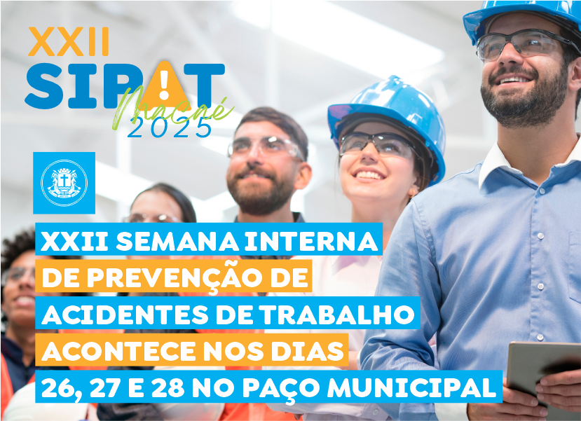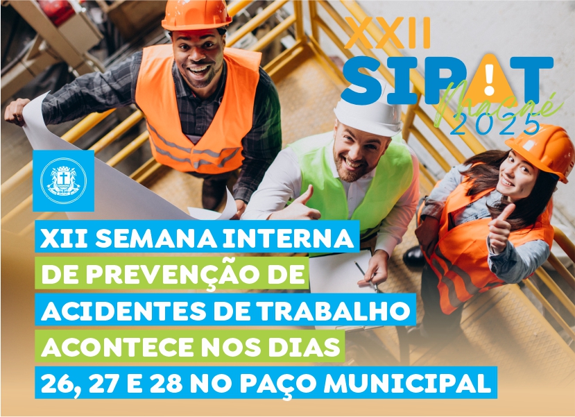 A XII Semana Interna de Prevenção de Acidentes de Trabalho (SIPAT) será realizada nos dias 26, 27 e 28 deste mês no Paço Municipal, das 8h30 às 12h. O evento é organizado pela Comissão Interna de Prevenção de Acidentes (CIPA), vinculada à Secretaria Municipal de Gestão de Pessoas. O tema deste ano é Corpo e Mente de Mãos Dadas com a Segurança.