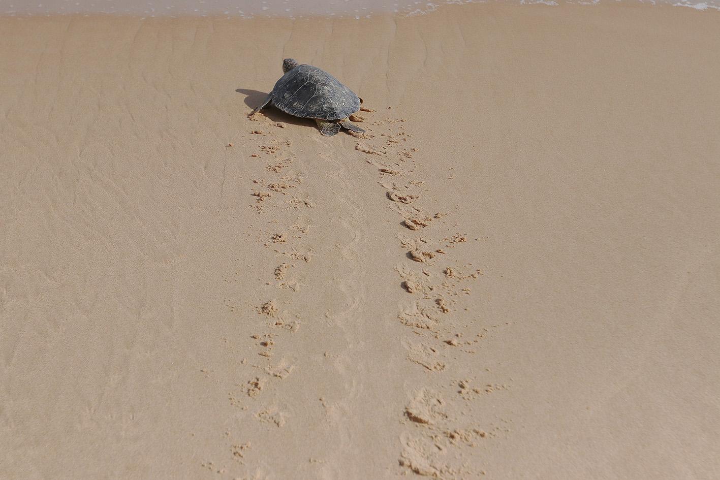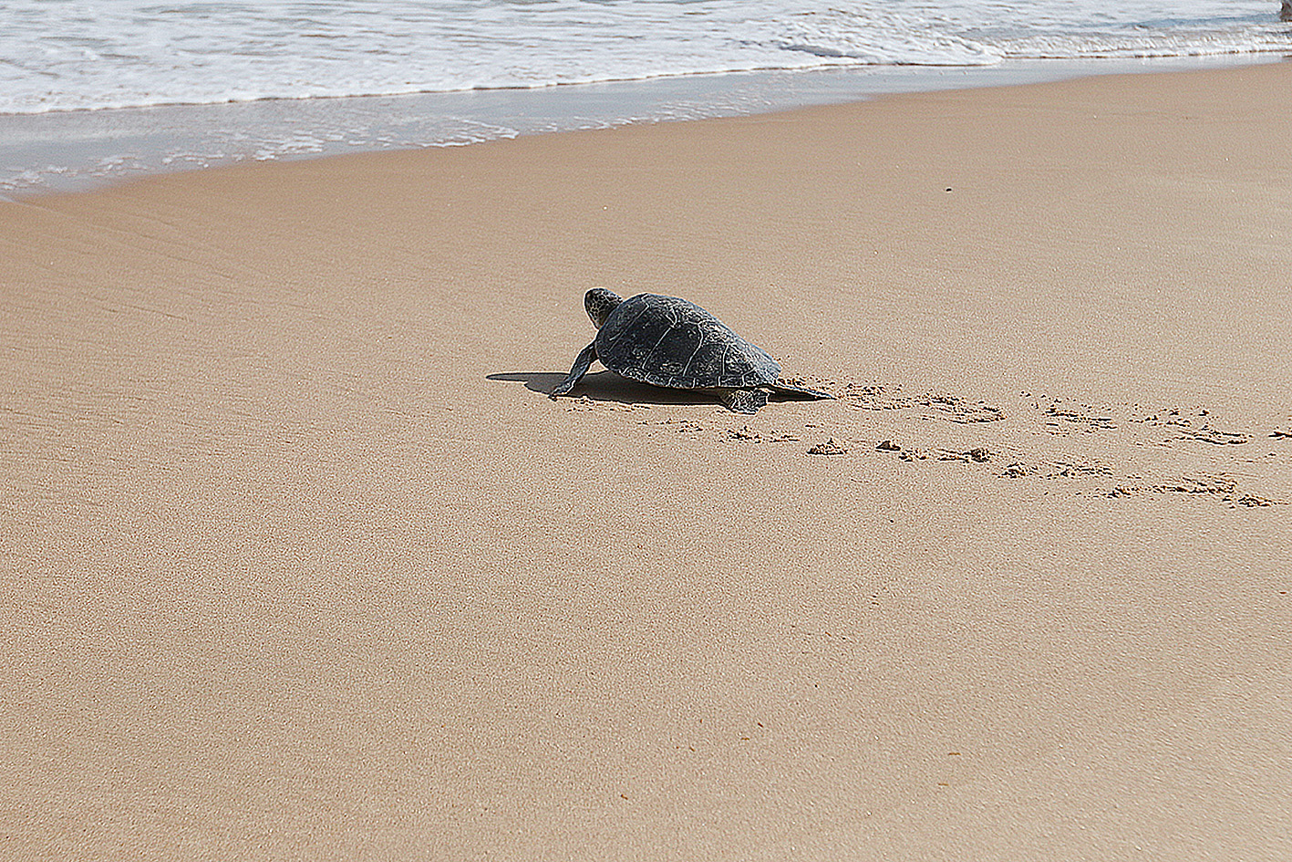 A tartaruga-verde foi solta na tarde desta sexta (28), na Praia dos Cavaleiros