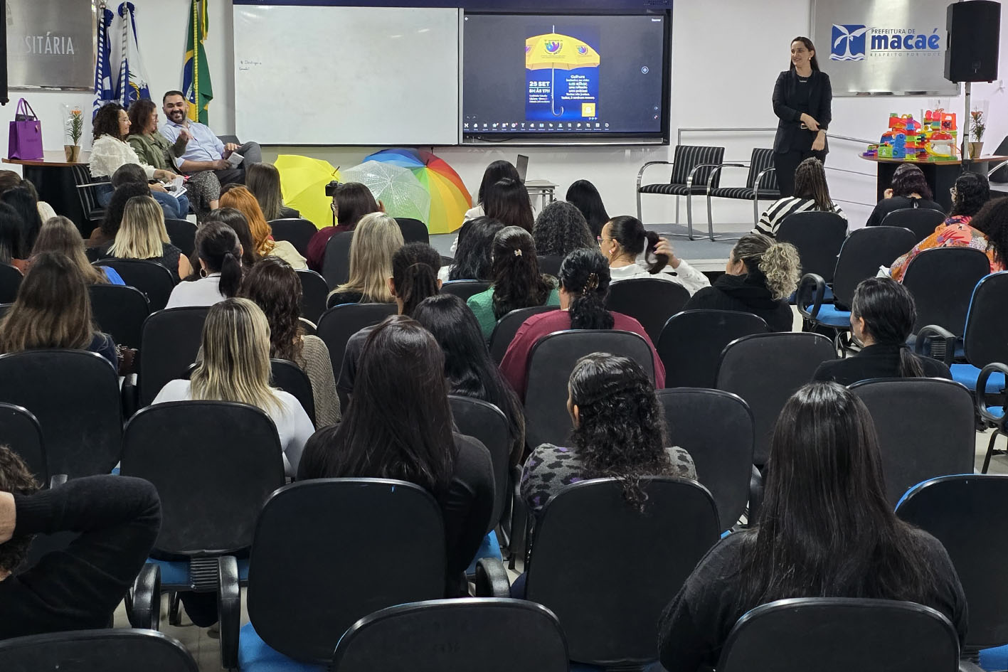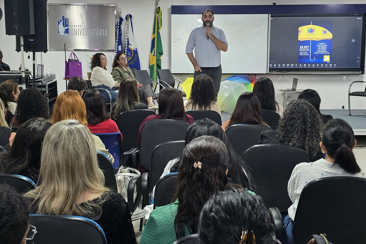 Com o tema “Os Ganhos, as Práticas, e Todos Juntos para Imersão da Cultura Inclusiva”, a programação contou com a palestra “Estratégia para Inclusão em Ambiente Escolar”, com a professora, Jaqueline Luz, além da exposição “Práticas e Vivências”, e a palestra “PEI: Plano de Ensino Individualizado”, com a professora Rita Gomes, que acontecerá no período da tarde. Na sequência haverá exibição do curta-metragem “Escuta Ativa”. O filme retrata a relação de uma pessoa com problemas de saúde mental (ansiedade e síndrome do pânico) e uma pessoa com deficiência auditiva, mostrando as dificuldades enfrentadas pelos protagonistas e a importância da comunicação como meio eficiente na resolução de conflitos e no desenvolvimento humano.