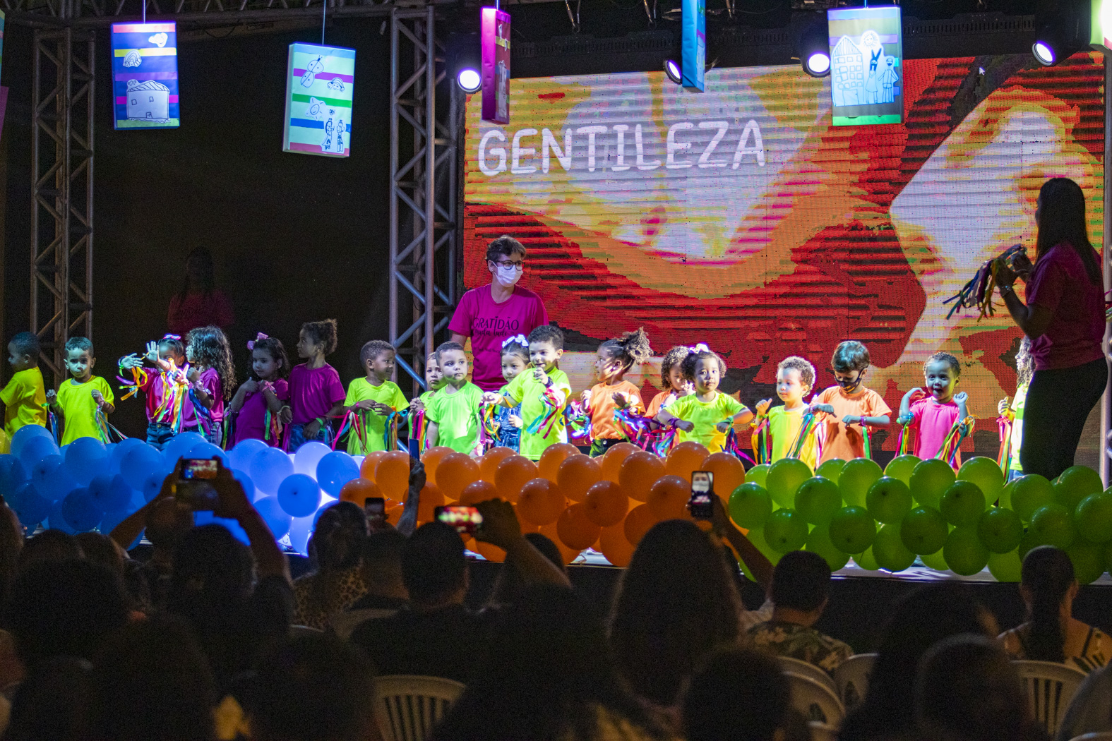 A programação, realizada em uma casa de eventos, foi abrilhantada com as apresentações das turmas da escola, que atende do maternal 2 ao pré-2. Cada grupo que subia ao palco deixava sua mensagem sobre a importância de semear sentimentos e gestos como amor, empatia, gentileza e amizade, reforçando que cuidar do planeta também passa pelo cuidado um do outro.