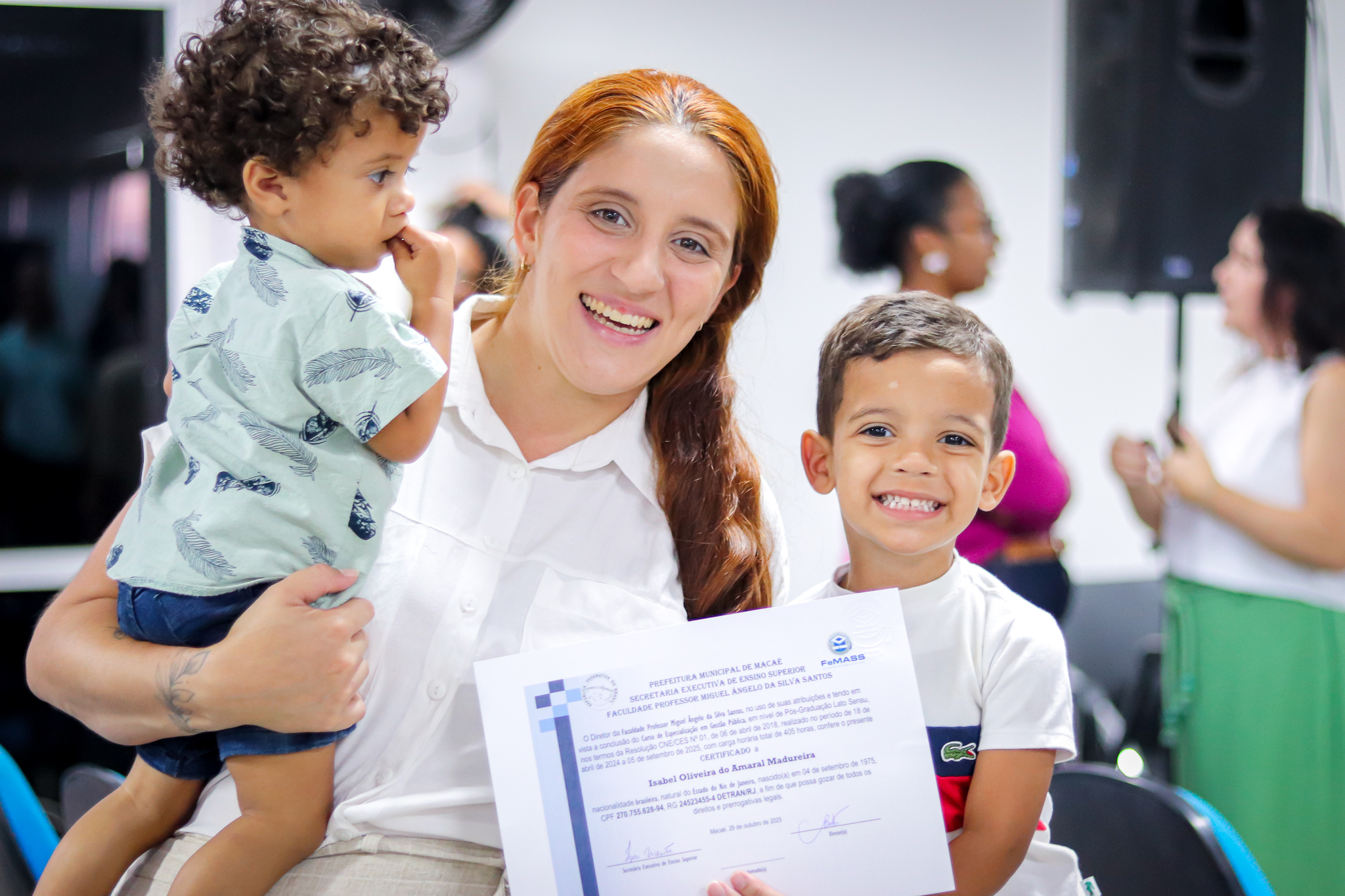 A Prefeitura de Macaé realizou, nesta quinta, 11, a solenidade de entrega dos certificados da sexta turma da Pós-Graduação em Gestão Pública, promovida pela Secretaria Executiva de Ensino Superior em parceria com a Faculdade Professor Miguel Ângelo da Silva Santos (FeMASS). Nesta edição, 35 servidores foram certificados, somando-se aos 277 profissionais já formados pelo programa, criado em 2006.