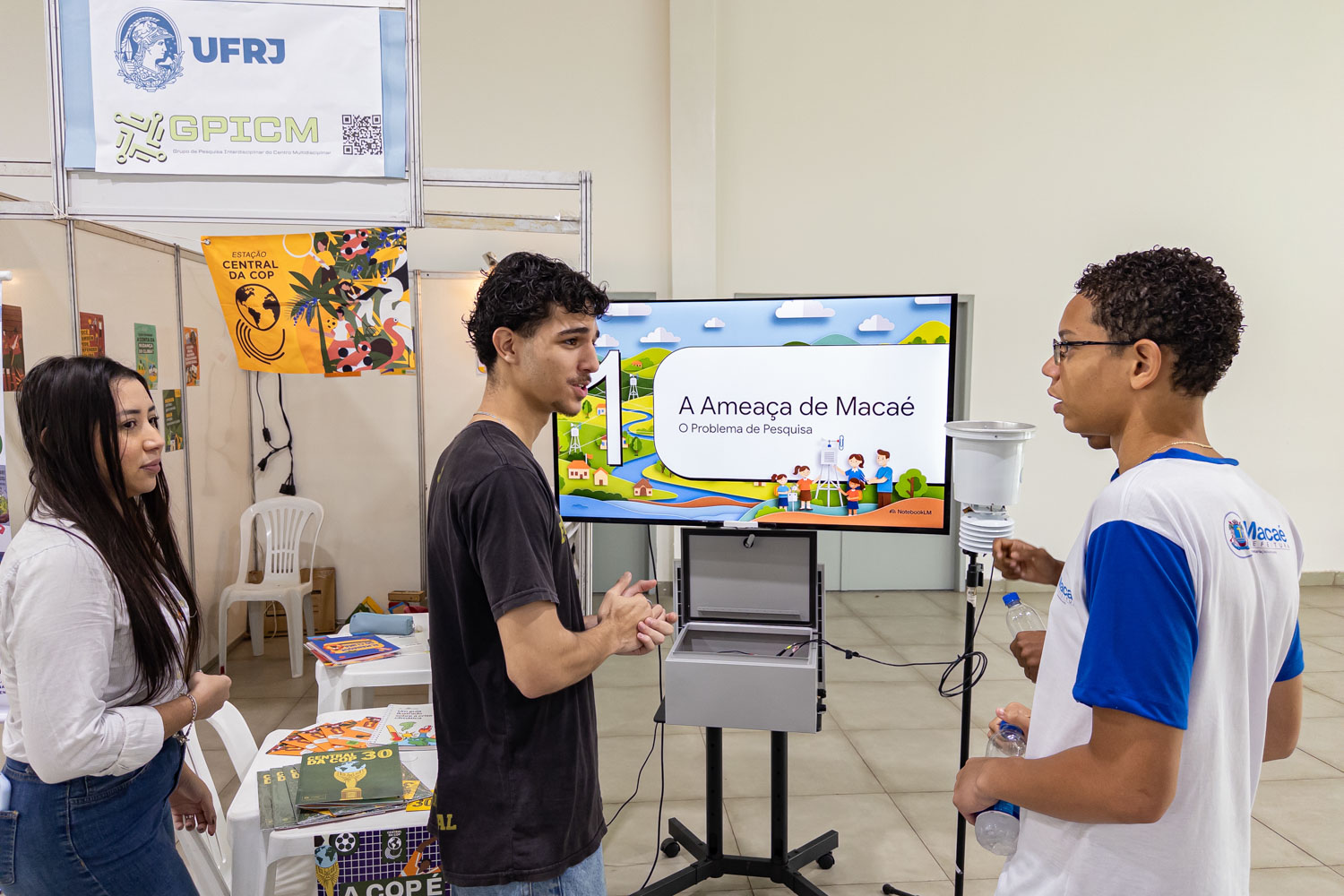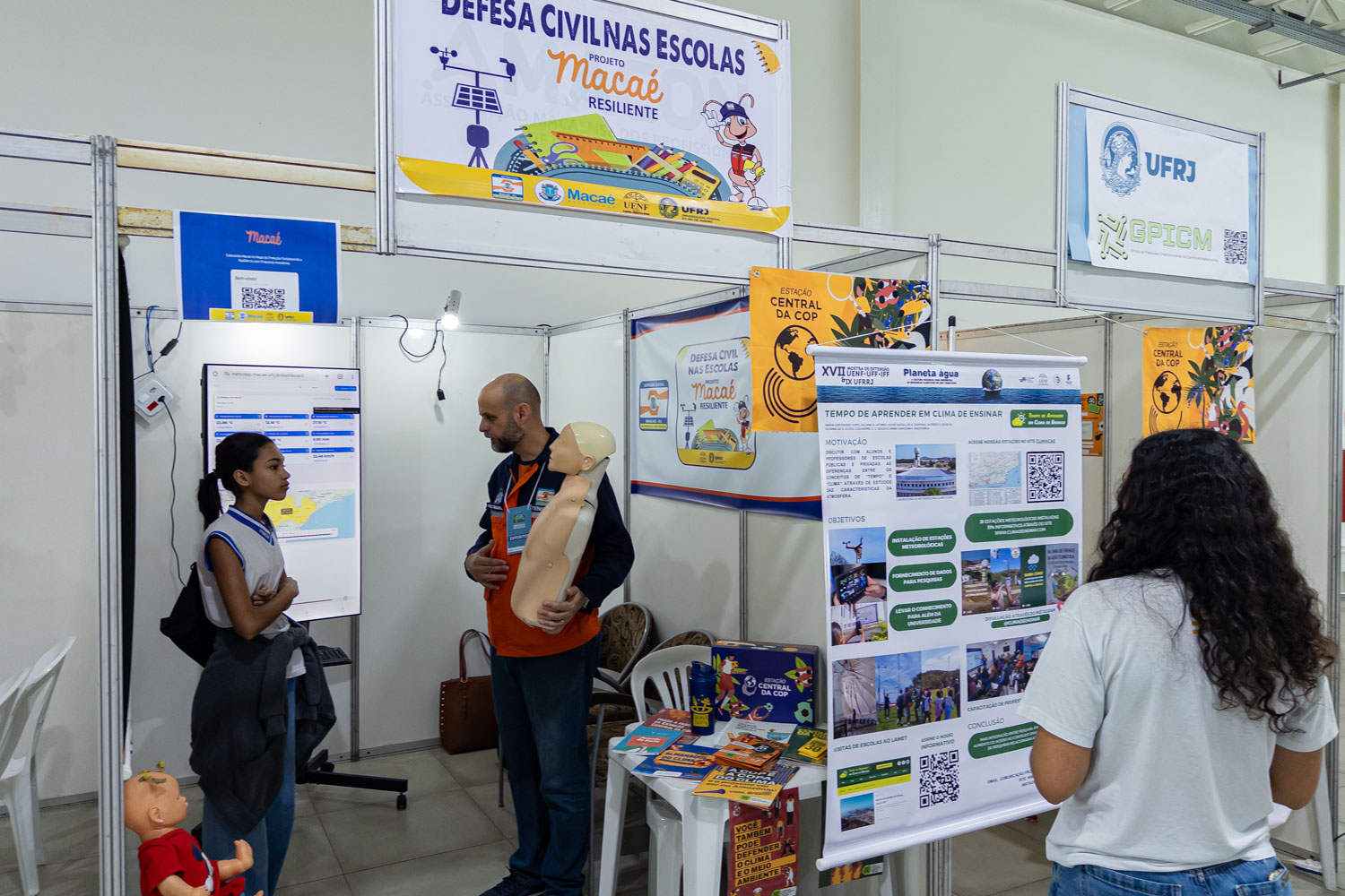 Já o professor Doutor da UFRJ/Macaé da área de computação e Coordenador do Grupo de Pesquisa Interdisciplinar, Anselmo Pestana Ribeiro Costa, acompanhava o seu grupo de alunos em um dos estandes. O projeto Telemetria começou a ser desenvolvido há pouco mais de três anos por demanda de pequenos produtores rurais por estações meteorológicas. Atualmente há 31 escolas cadastradas no sistema. No município, são 42 estações, também em empresas, universidades e na Defesa Civil. O objetivo do projeto é mitigar desastres naturais por meio da parceria entre universidade e poder público.
