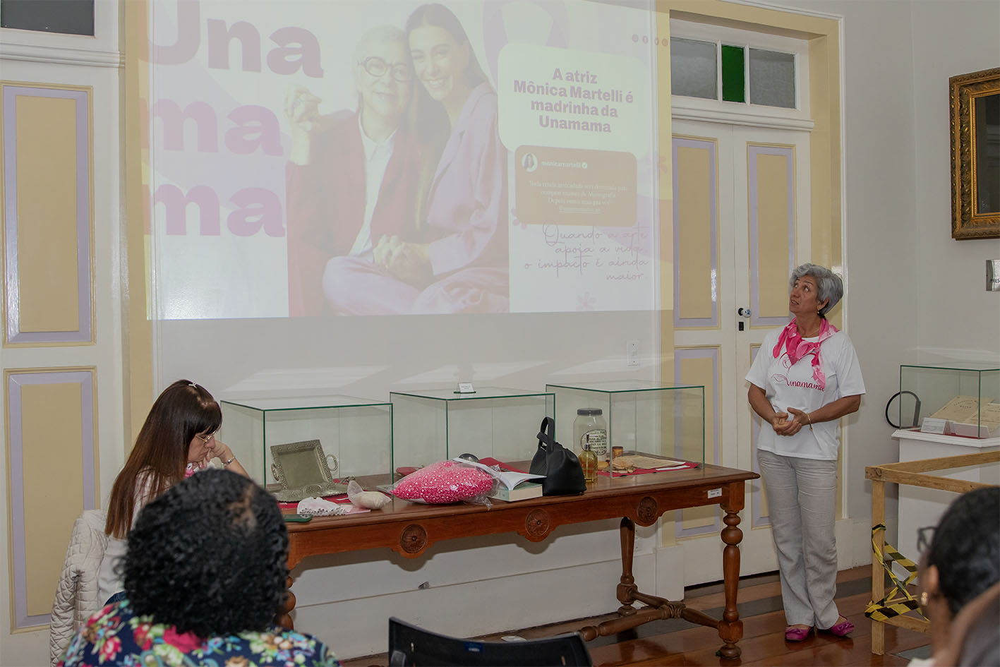 Para comemorar o Outubro Rosa, dedicado à conscientização do câncer de mama, o Solar dos Mellos, realizou na tarde desta quarta-feira (22), uma Roda de Conversa com a Ong Unamana. O evento contou ainda com exposição de artesanato, gastronomia e música ao vivo.