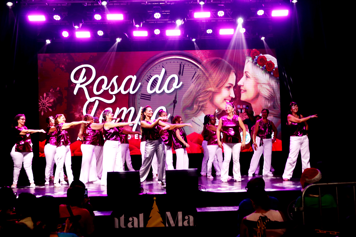 A Vila do Papai Noel recebeu na quarta-feira (10), às 19 horas, dia dedicado à melhor idade, o espetáculo “Florescendo na Melhor Idade”, promovido pelo Programa Cidade da Melhor Idade, com apoio da secretaria de Cultura. O espetáculo celebrou a força, a beleza e o poder das mulheres que seguem desabrochando ao longo da vida. Inspirado no perfume das rosas e das flores, a apresentação prestou homenagem às mulheres que não apenas envelhecem, mas florescem com ainda mais intensidade.