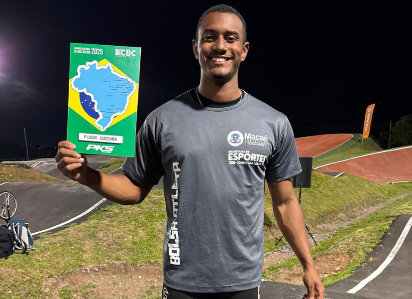 O macaense Sillas Andrade (20) trouxe este mês (6/12), do Parque Olímpico do Cajuru, em Curitiba, a Taça Brasil e o título de Campeão do Ranking Nacional de Ciclismo BMX 2025, na categoria Sub-23, em final com cinco atletas. Sillas, que treina para ingressar na Seleção Brasileira no próximo ano, integra o Bolsa Atleta Macaé.