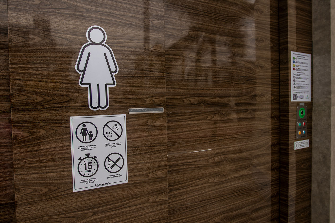 Os módulos têm projeto antivandalismo, estrutura em aço galvanizado com acabamento em aço inox e revestimento resistente. Medem externamente 190 cm de profundidade, 499 cm de comprimento e 250 cm de altura, com espaço interno confortável para uso e circulação. Funcionam com automação controlada por CLP, portas automáticas com sistema antiesmagamento, descarga por sucção com consumo de até 2 litros, limpeza e secagem automáticas da bacia e do piso, acionamento por sensores (sem toque) e sistemas de iluminação, ventilação e aromatização automáticos. Há também interface de voz para orientar o usuário e sinalização externa do status de funcionamento.