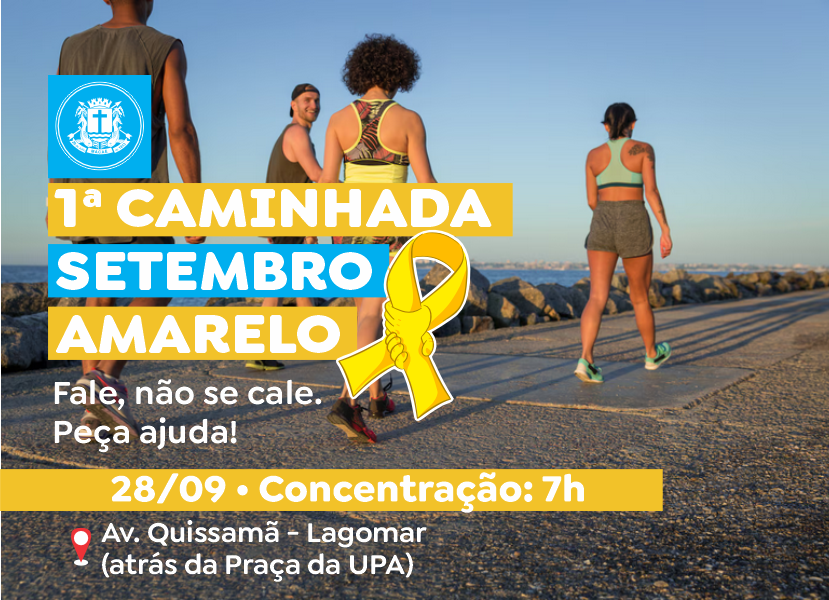 A 1ª Caminhada Setembro Amarelo, que tem como tema: Fale, não se cale. Peça ajuda!, acontecerá no dia 28 de setembro de 7h às 11h, no bairro Lagomar. O evento organizado pela Ong Círculo Inclusivo Cuidar e Amar (Cica) conta com o apoio da Prefeitura de Macaé, academias do bairro e moradores.