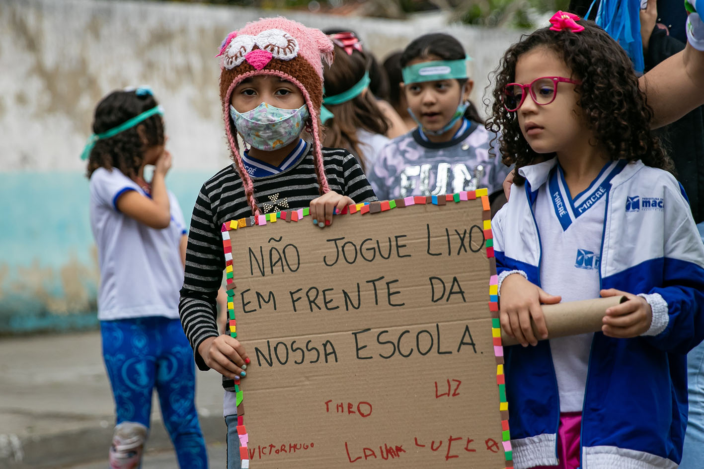 A preservação do meio ambiente, o ensinamento sobre o local certo de jogar o lixo e não poluir a rua nem os bueiros foram apontados pelo papai Cristiano Pacheco como ensinamentos importantes que a escola intensifica ao promover a caminhada. “E os pais participando junto com os filhos colaboram para que a criança cresça com consciência ambiental e ecológica”, mencionou Cristiano, que percorreu as ruas de mãos dadas com o filho Benjamin, de quatro anos.