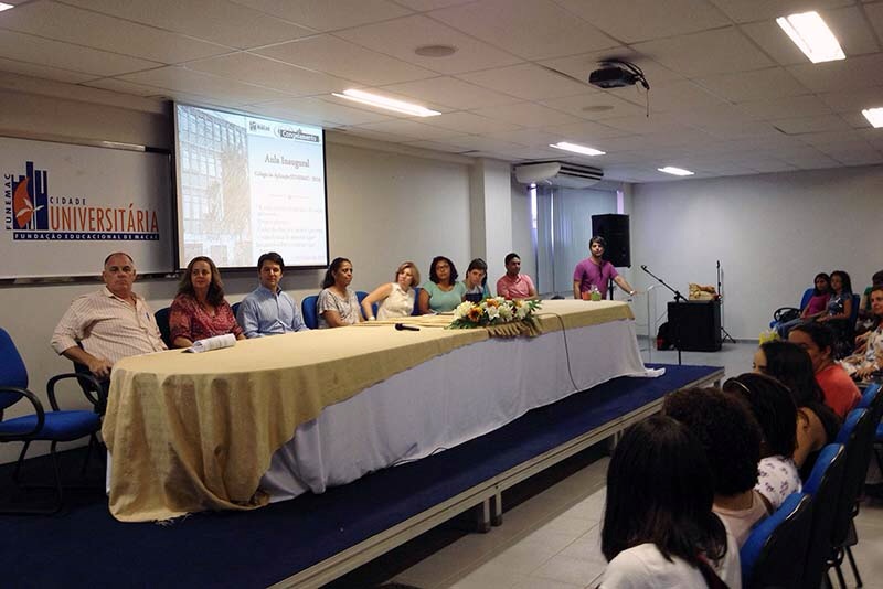 No mesmo espaço, na aula inaugural, se encontraram alunos das 1ª à 3ª séries do CAp, que entra no quarto ano de atividades em busca de resultados ainda melhores, de acordo com a diretora geral, Wanessa Leal. A composição da mesa mostrou como o colégio lida com o respeito a todos reunindo na frente dos trabalhos da cerimônia o representante do Grêmio Estudantil do CAp, Pedro Faria; o representante do Conselho Escolar do colégio, Alex Macedo; a professora Daiana Andrade, representando os professores; a diretora Wanessa Leal e a vice-diretora, Sueli Santos; a diretora geral da FeMASS, Larissa Frossard; o superintendente Acadêmico da Funemac, Sérgio Netto; a subsecretária do Ensino Fundamental, Luciane Carneiro, representando a Secretaria Municipal de Educação; o vereador Marcel Silvano, representante da Câmara Municipal; e o presidente da Funemac, Gleison Guimarães.