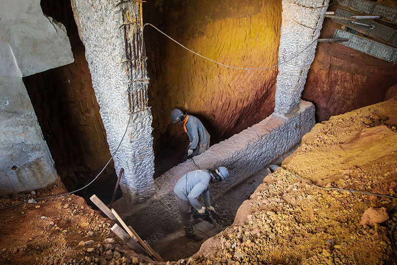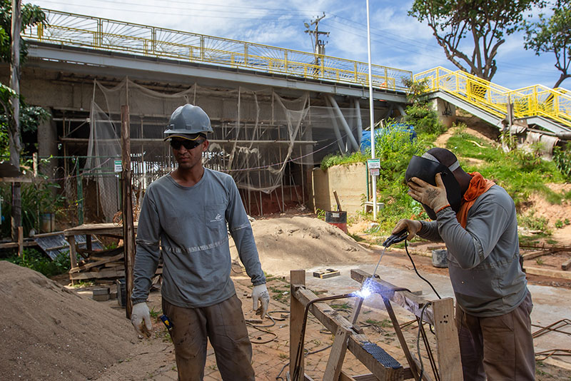 No momento, os profissionais atuam na finalização do apicoamento das estruturas na parte inferior do Viaduto para retirada de todo o concreto velho dos tabuleiros e vigas, e posterior reforço dos mesmos.