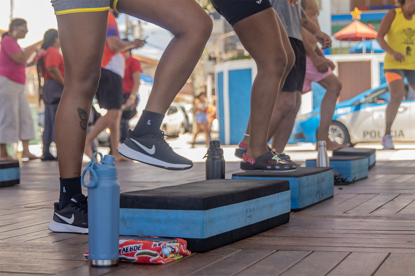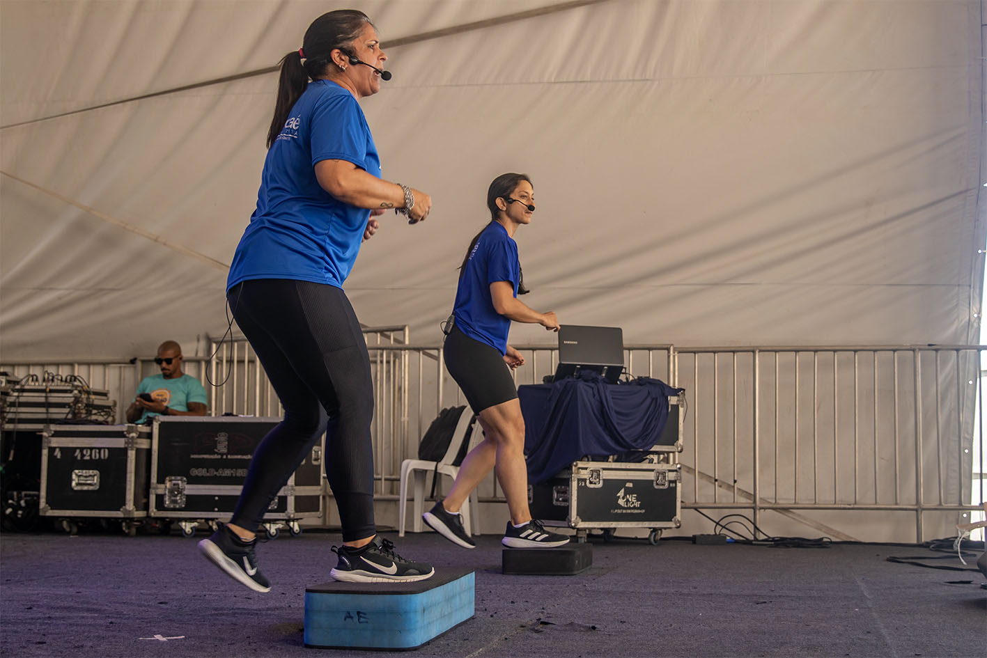 Quem passou no local pôde participar de um aulão de Step. Com muita animação e exercícios que testaram a resistência física, os participantes ficaram atentos a cada movimento novo.