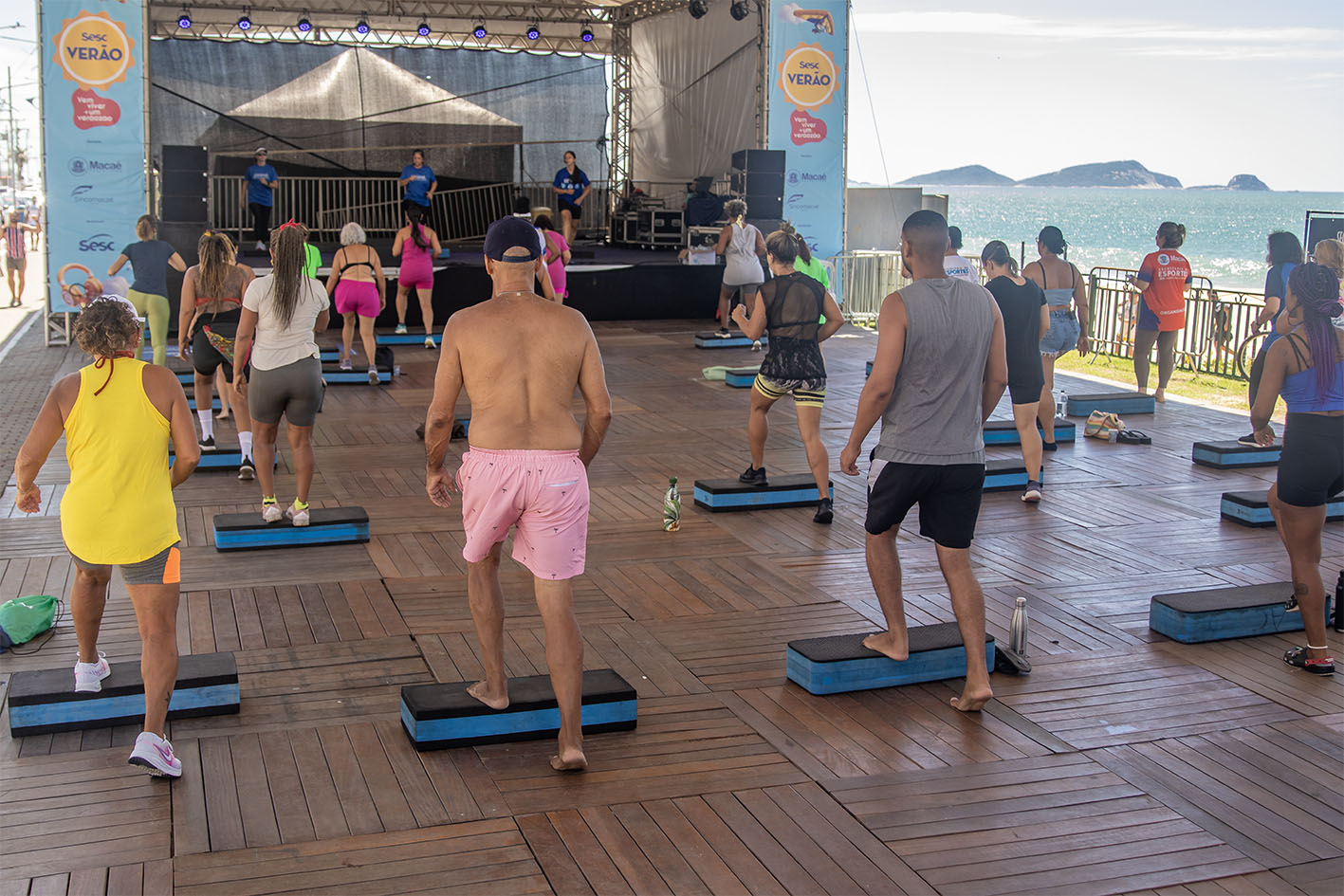 A programação na Arena Esporte Verão, na manhã deste domingo (1º de fevereiro), movimentou a Praia Campista desde as primeiras horas com o Passeio Ciclístico, seguido de Futebol Infantil, Futevôlei, Yoga, Kickboxing e Step. O evento é organizado pelo Sesc e Prefeitura de Macaé. As atividades serão realizadas até o dia 8 de fevereiro.