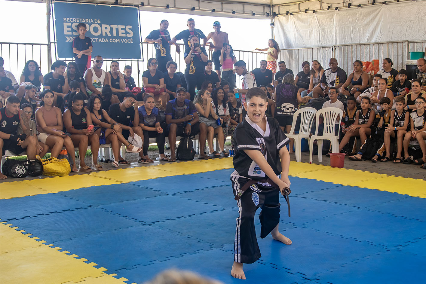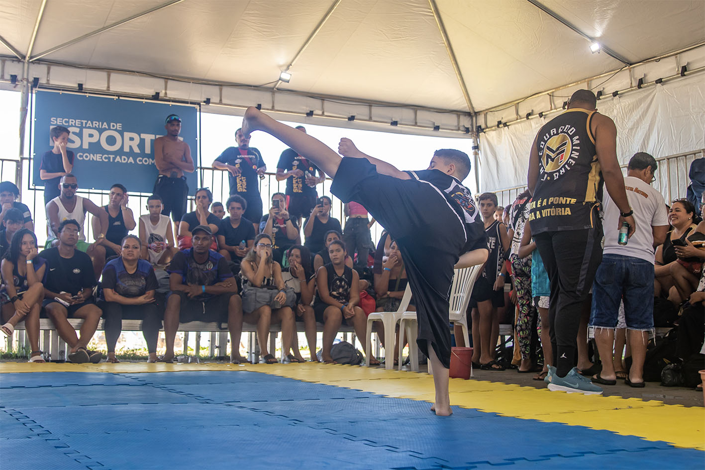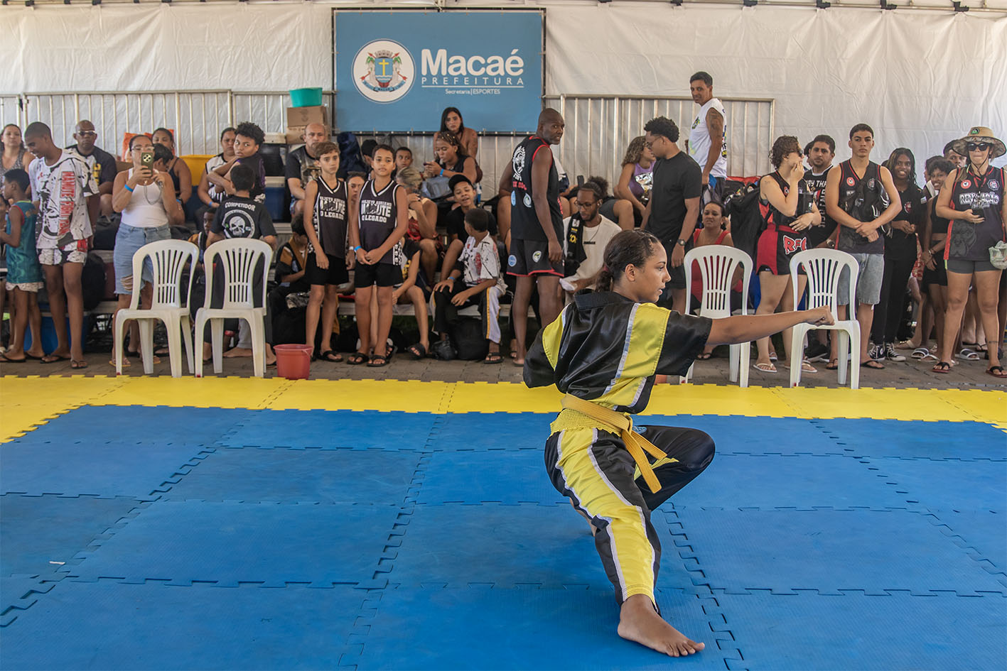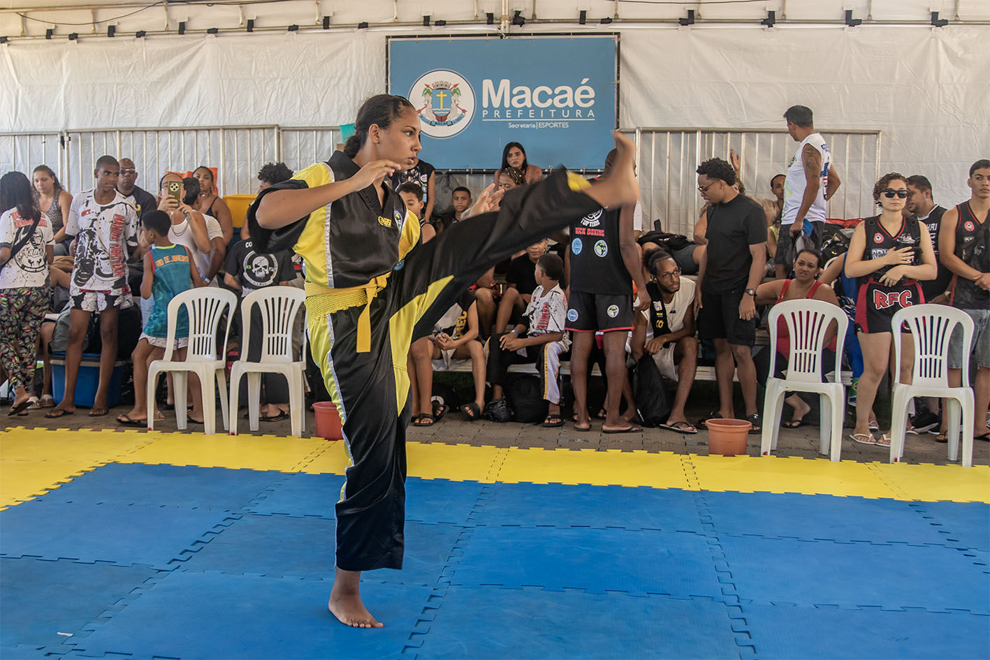 Outra atividade que chamou a atenção do público foi as apresentações de Kickboxing, que trouxe atletas de outras cidades, como a Thayane Santana, de 16 anos de idade, que veio de São Gonçalo.
