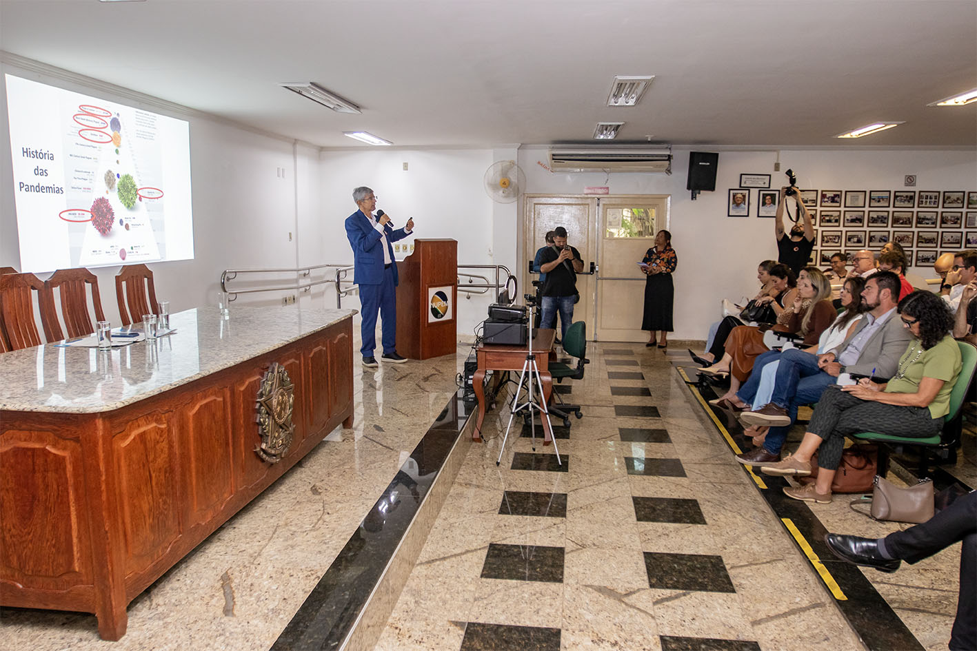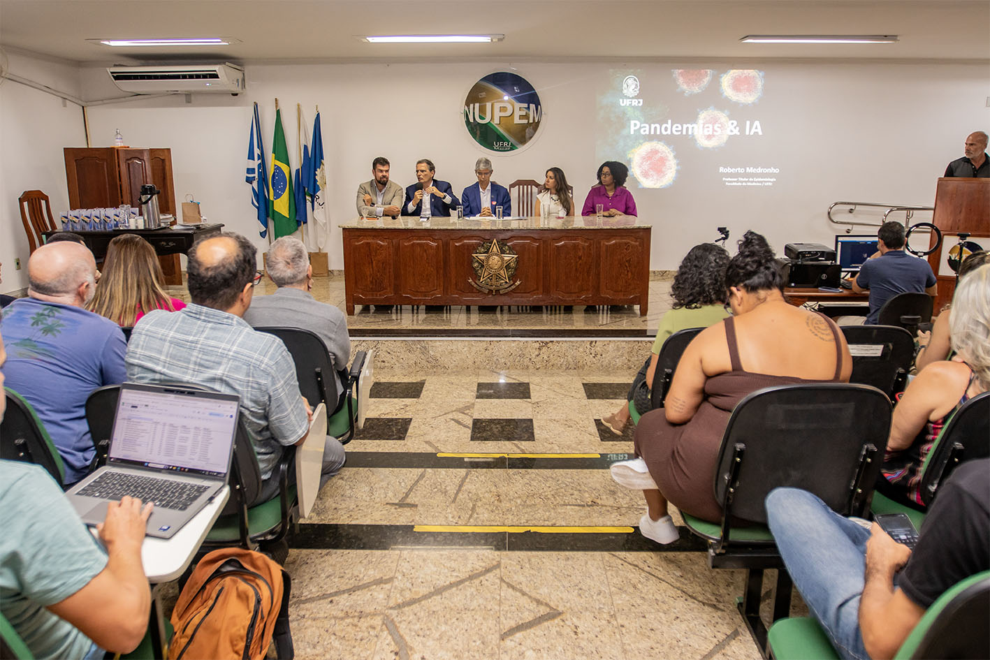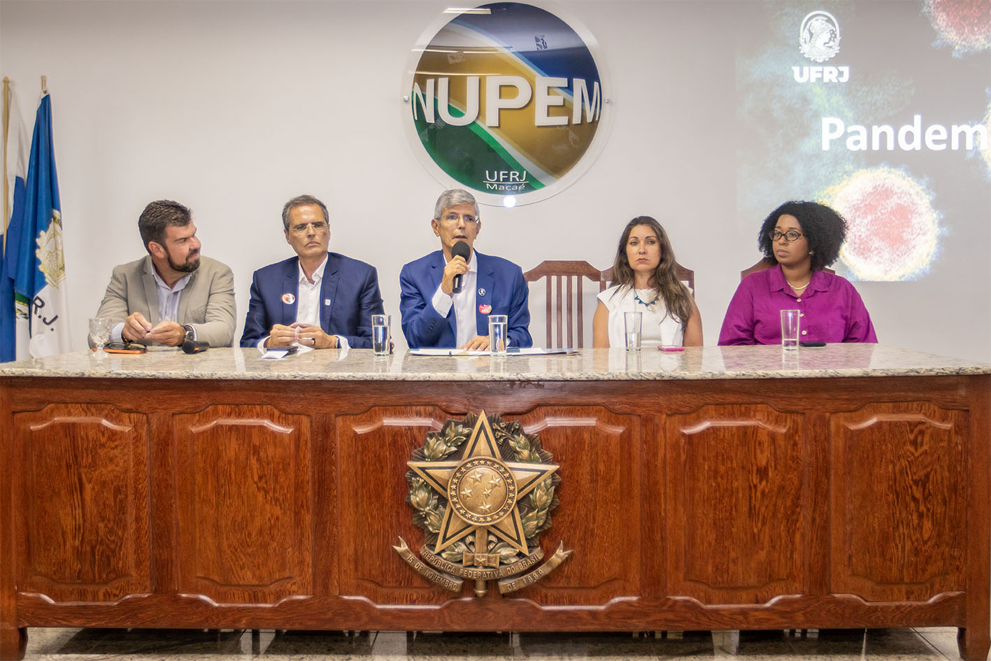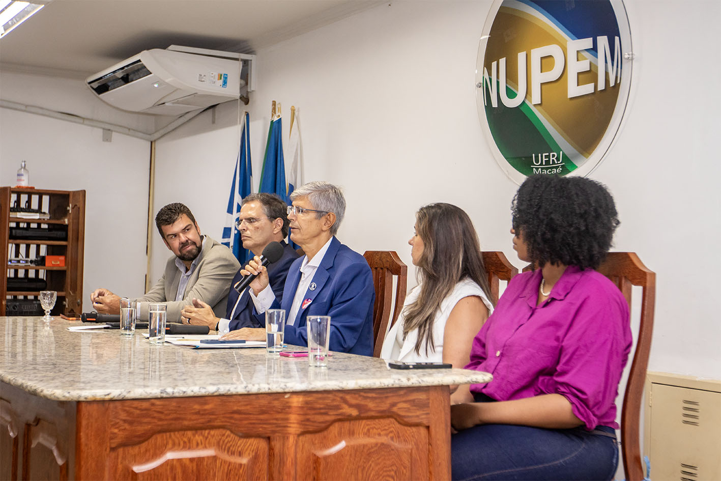 A aula inaugural do curso de Biomedicina aconteceu na tarde desta terça-feira (10), no Nupem/UFRJ-Macaé e contou com a presença do prefeito Welberth Rezende; do reitor da UFRJ, professor Roberto Medronho; do decano da UFRJ, Irnak Marcelo Barbosa; da diretora do Nupem/RJ-Macaé, Cíntia Monteiro de Barros e da Secretária Executiva de Ensino Superior, Iza Vicente.
