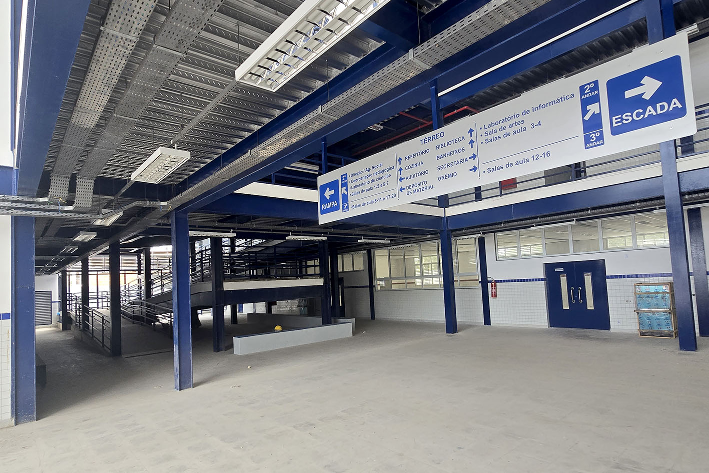 O prédio, de três pavimentos e equipado com quadra, passou por uma ampla intervenção. As obras incluíram recuperação de salas, sanitários, cozinha, copa e vestiários, além da instalação de novas esquadrias, portas e bancadas.