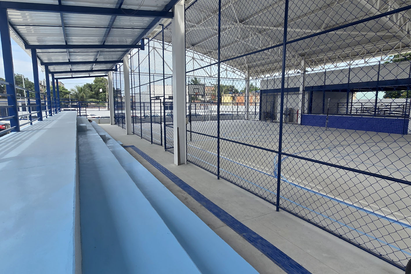 Outros serviços realizados envolvem pintura geral, reparos na rede elétrica, hidráulica e hidrossanitária, garantindo a segurança e a funcionalidade da estrutura. Entre as ações executadas, destaca-se a ampliação da quadra poliesportiva.