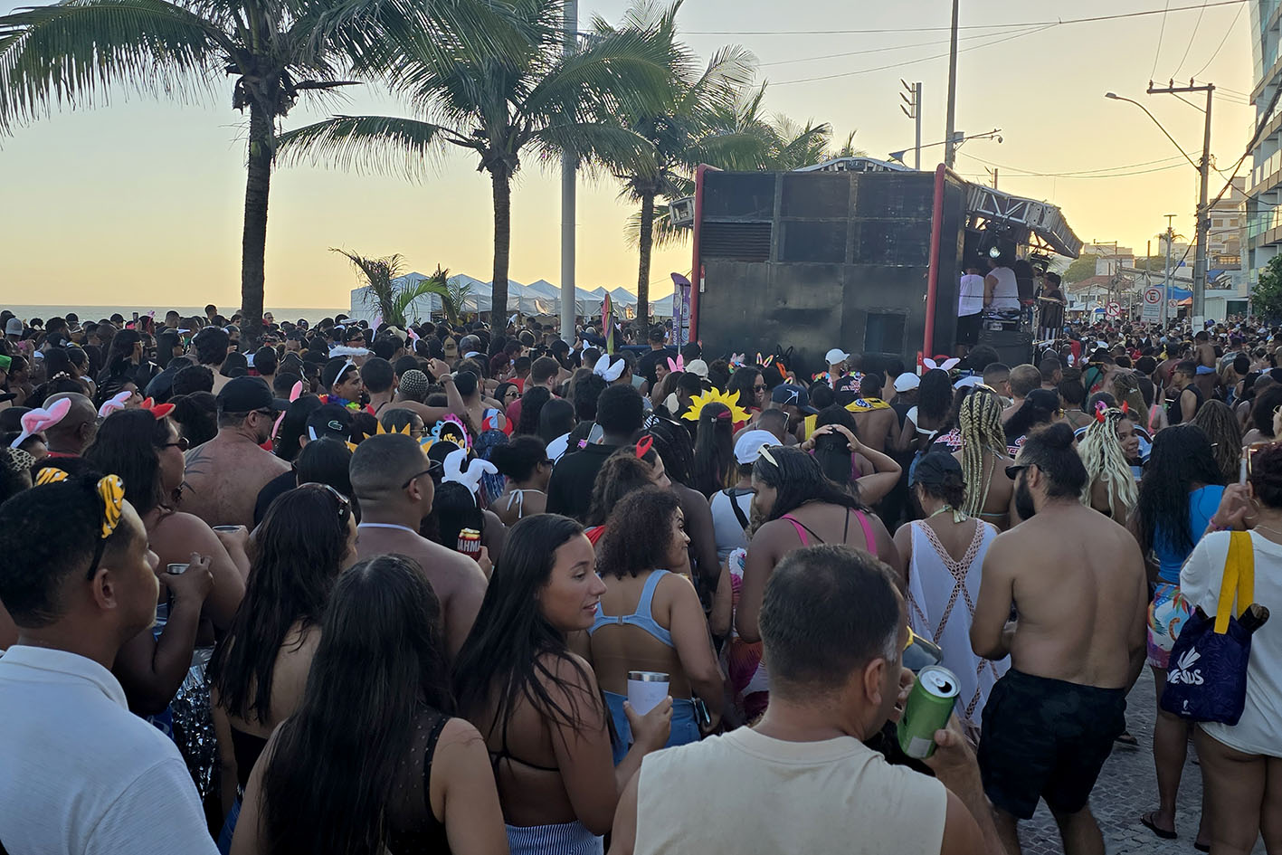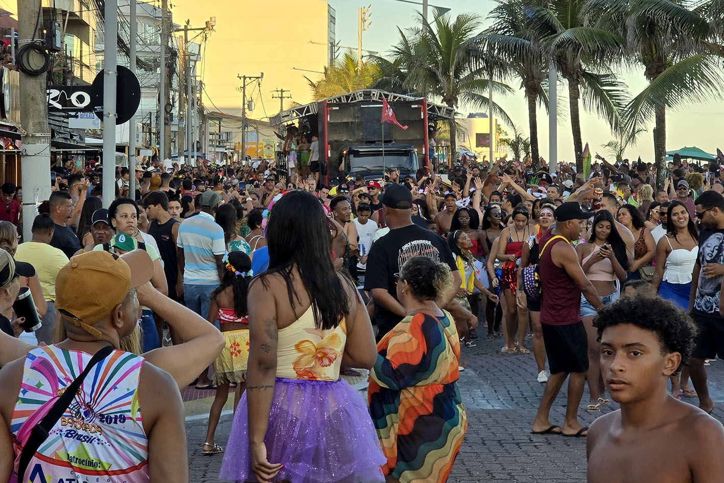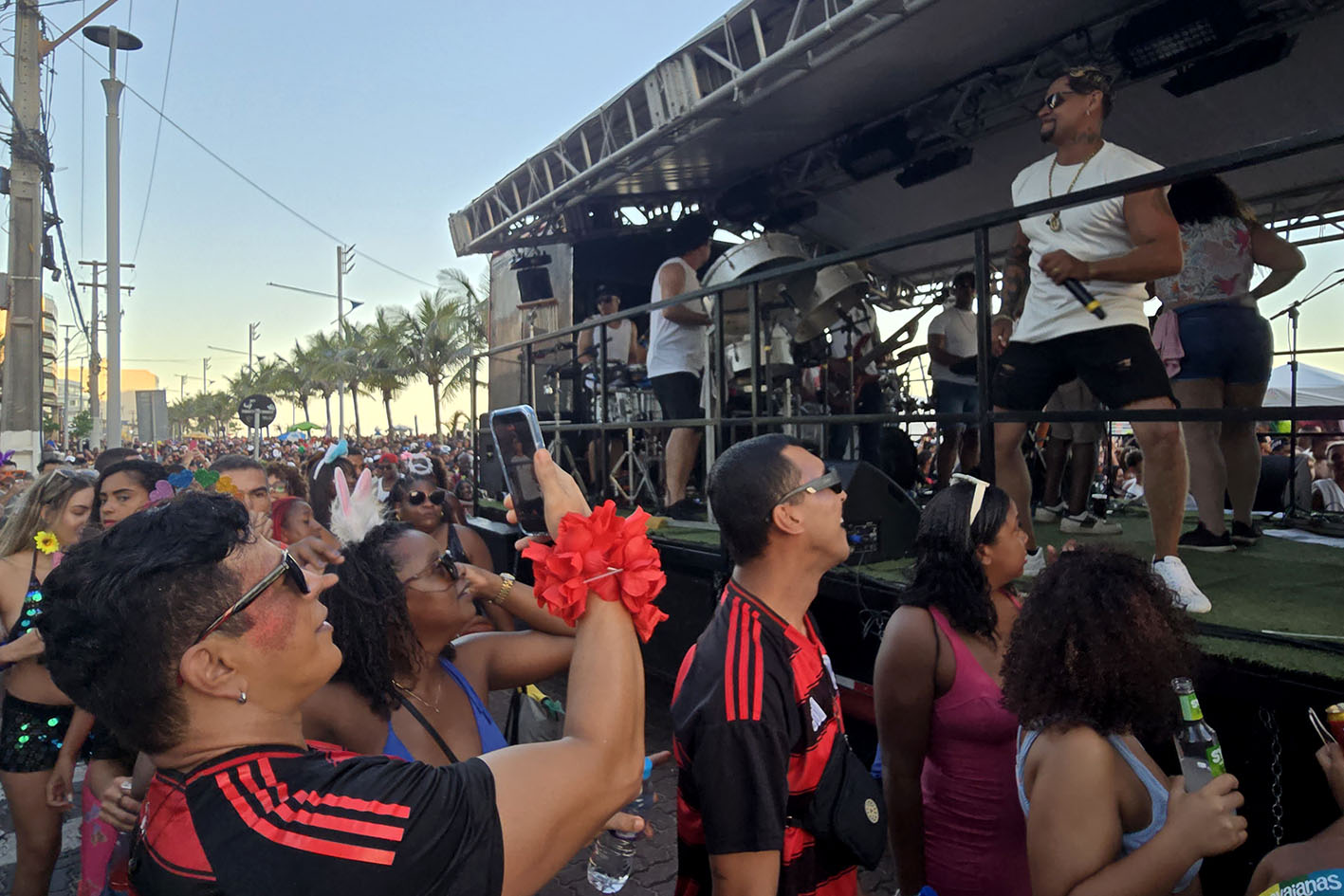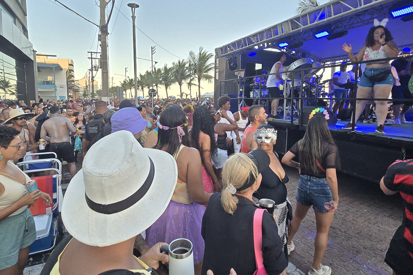 O ritmo contagiante chamou a atenção de todos os foliões que estavam nos bares e calçadão da Orla dos Cavaleiros, como a esteticista Maria Araújo, que chegou cedo na praia para não perder nenhuma atração do segundo dia de Carnaval.