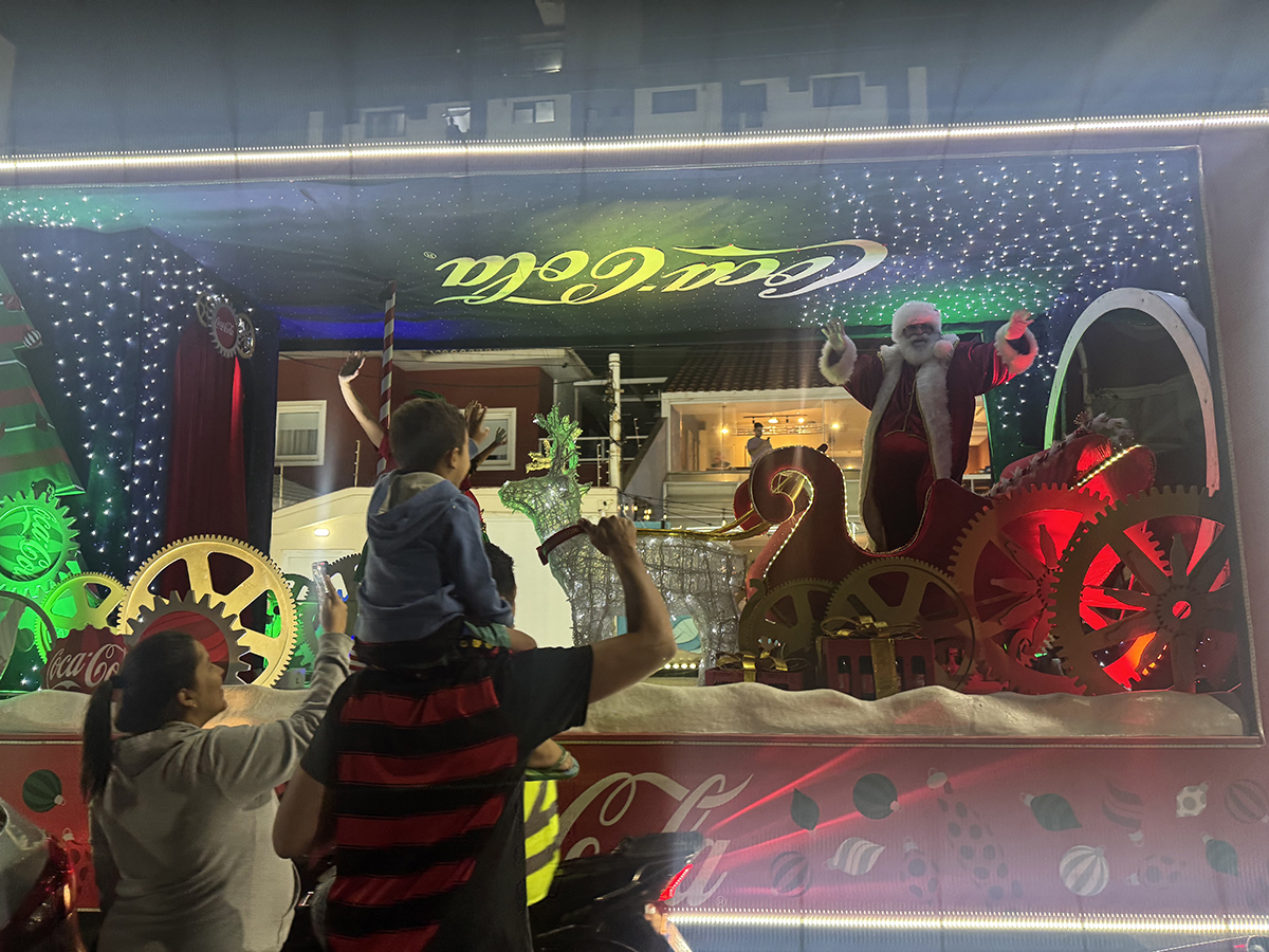 A magia do Natal tomou conta das ruas de Macaé na noite desta quarta-feira (19) com a passagem da tradicional Caravana da Coca-Cola. O desfile iluminado atraiu centenas de moradores, especialmente famílias com crianças, que aguardavam a chegada dos caminhões temáticos.