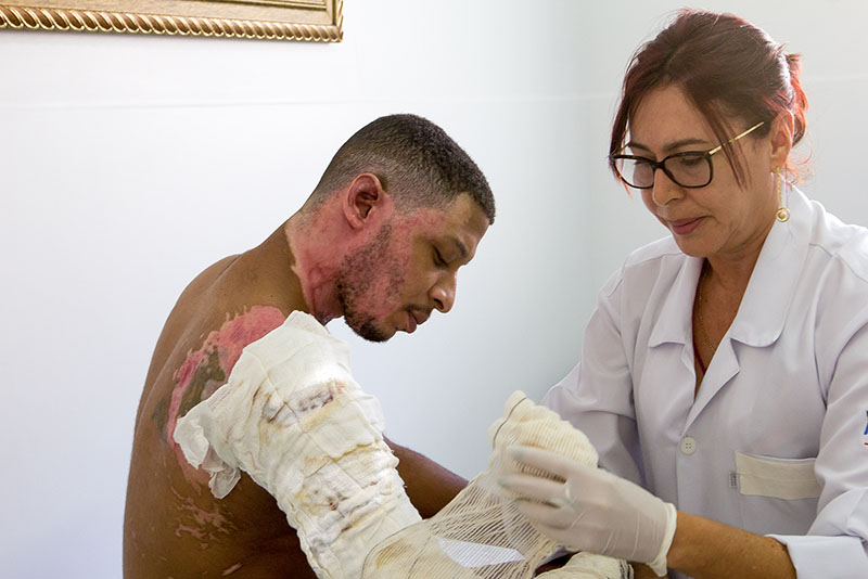 No caso do paciente Paulo, a médica Maria Luiza Neres informa que não há previsão de alta. "A queimadura feita por descarga elétrica é muito grave", avalia. Ela ressalta que além de queimados, a Casa do Curativo realiza tratamentos de pacientes com câncer de pele e lesões crônicas.