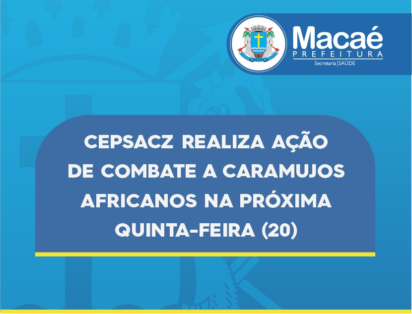 Equipes da Coordenadoria de Promoção à Saúde dos Animais e Controle de Zoonoses de Macaé (CEPSACZ) irão atuar no combate à proliferação do caramujo africano na próxima quinta-feira (20). O trabalho será executado nos bairros Cavaleiros, Lagoa e Mirante da Lagoa devido ao grande número de demandas recebidas nas últimas semanas. A ação específica também vai acontecer no Centro de Especialidades Médicas Dona Alba.