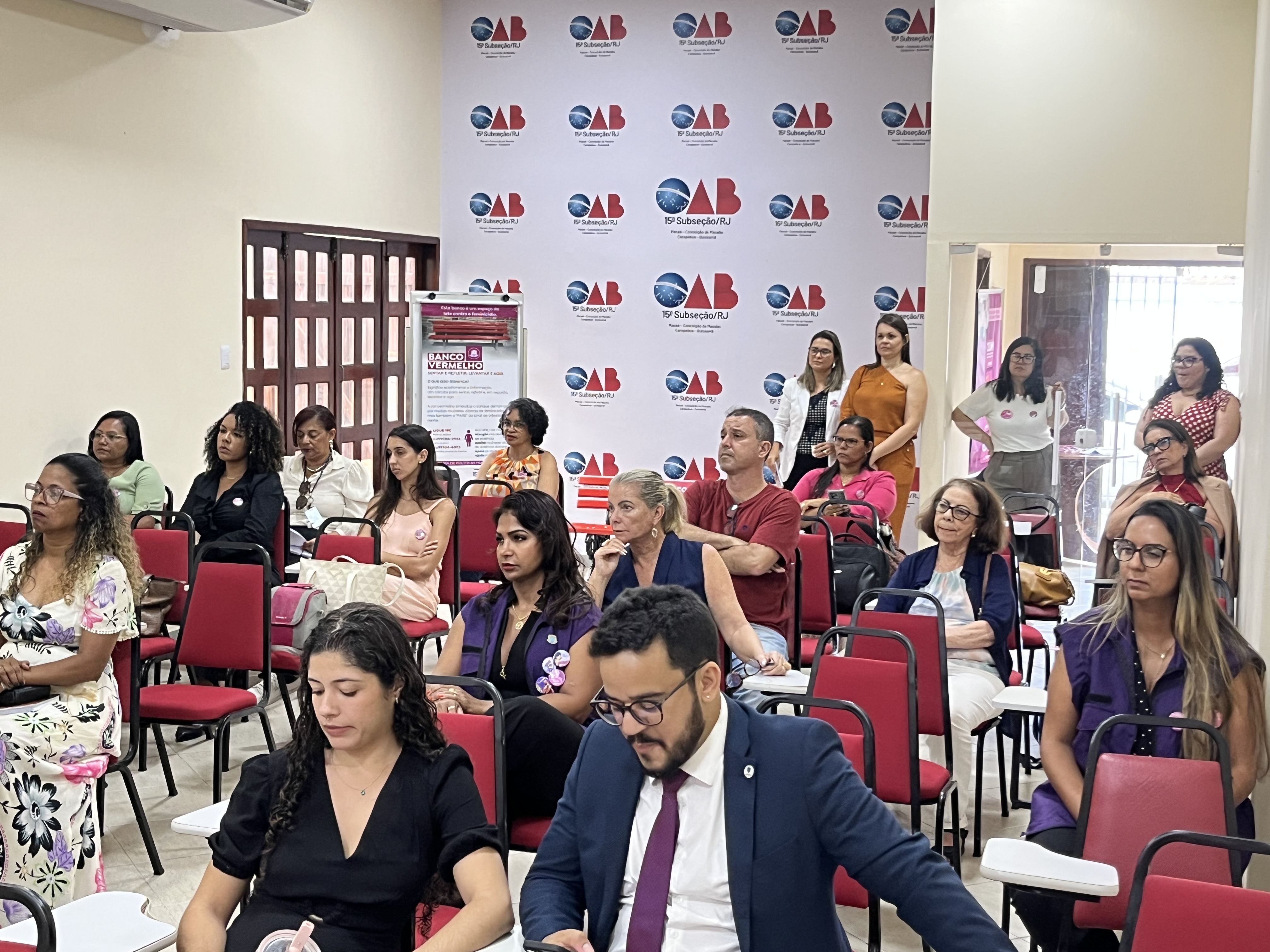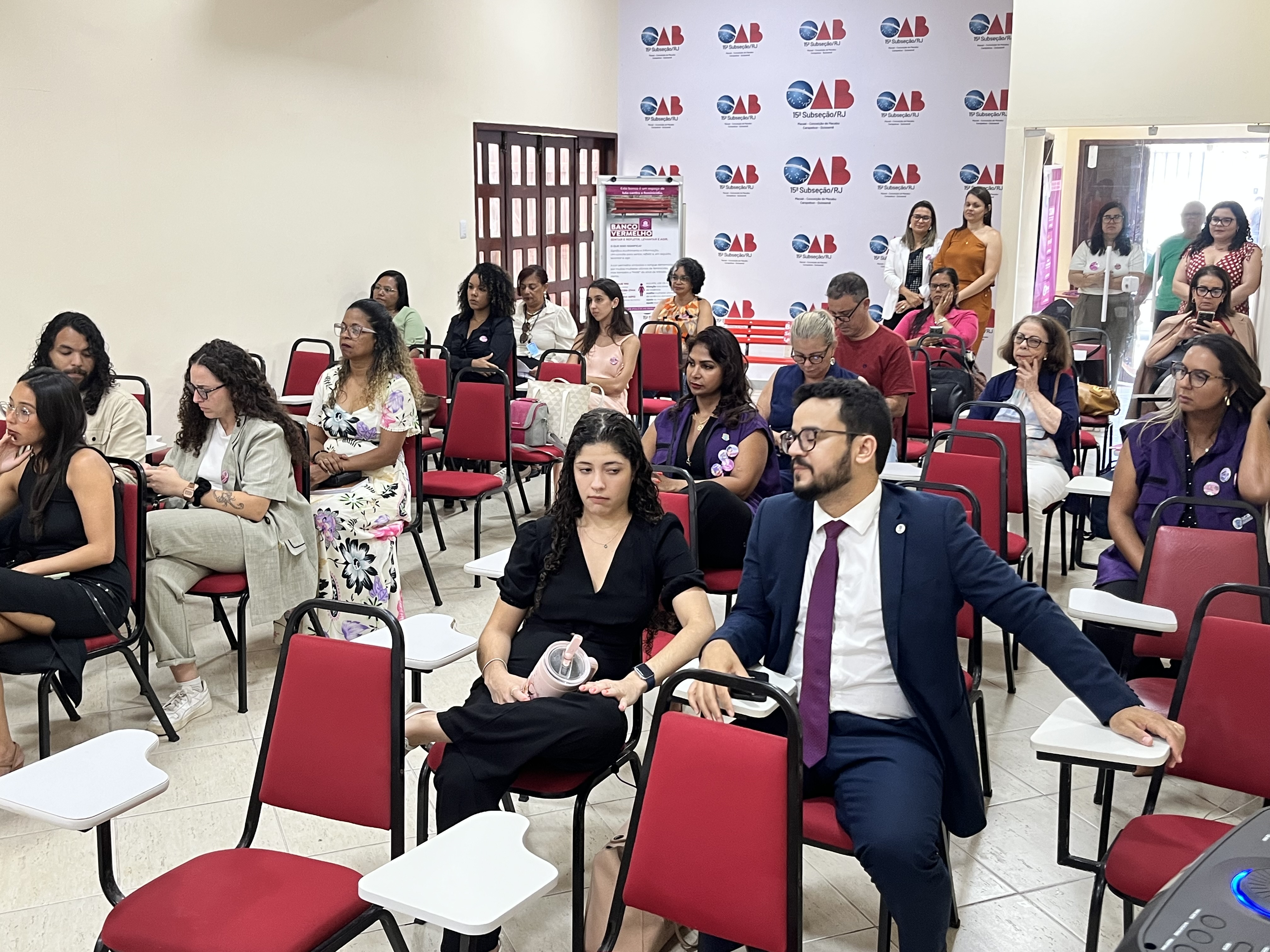 A Secretaria Municipal de Políticas para as Mulheres realizou na tarde desta quinta-feira (4), o Cine Debate sobre o documentário: “A Primeira Advogada do Brasil- Myrthes Gomes dos Campos e a Jornada pela Emancipação Feminina”, no auditório da 15ª Subseção da Ordem dos Advogados (OAB), Macaé. A atividade é alusiva aos 21 Dias de Ativismo pelo Fim da Violência contra a Mulher.