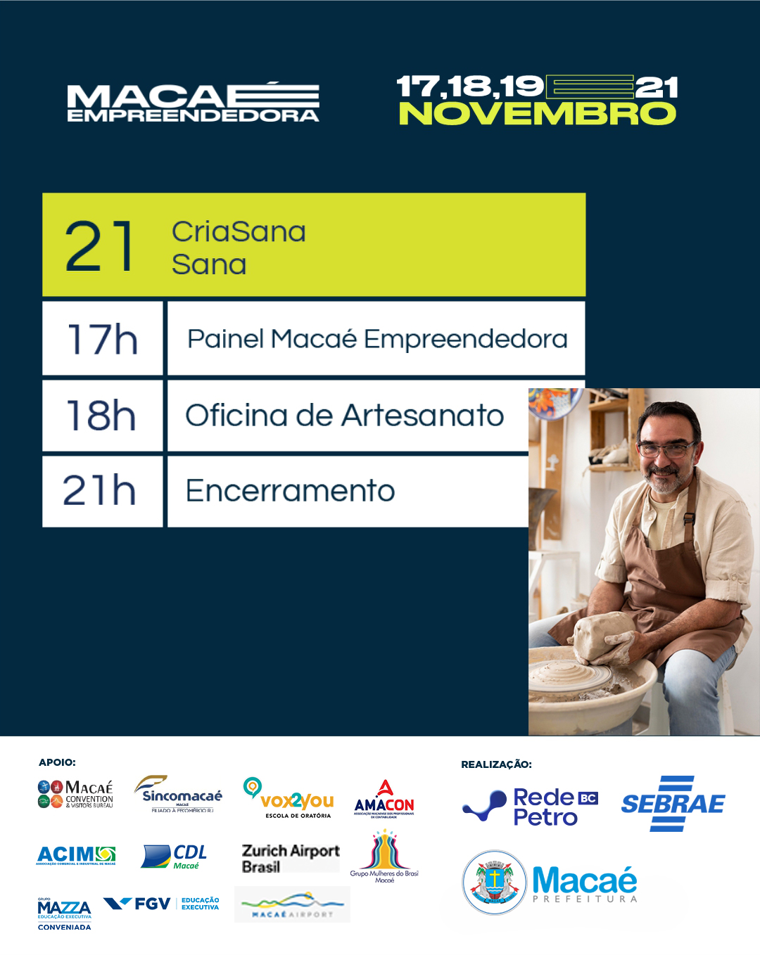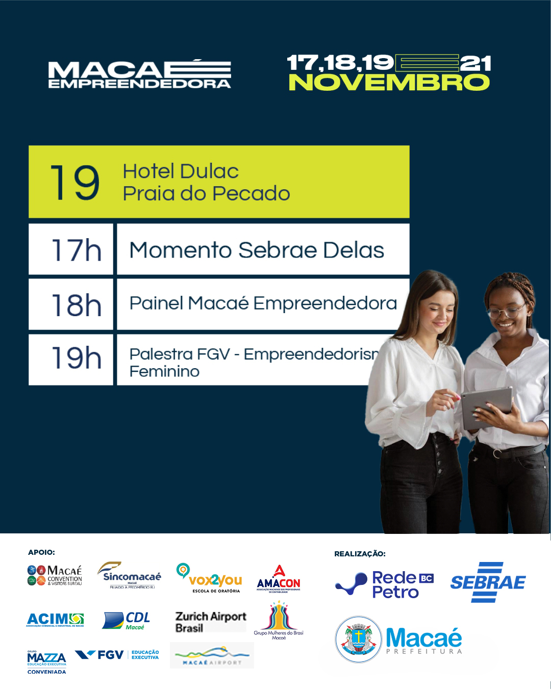Em comemoração à Semana Global de Empreendedorismo, Macaé desenvolveu o fórum Macaé Empreendedora. Já na sua terceira edição, será realizada nos dias 17 a 21 de novembro em várias regiões da cidade. A Macaé Empreendedora contará com painéis de empreendedores locais de sucesso, pitch com os empreendedores, rodada de negócios e palestras master em empreendedorismo como com a especialista da FGV, Solange Pose Garcia, que irá abordar ‘Mulheres que Transformam Ideias em Resultados: o Poder do Empreender’ – pontuou o secretário de Desenvolvimento Econômico, Rodrigo Vianna.