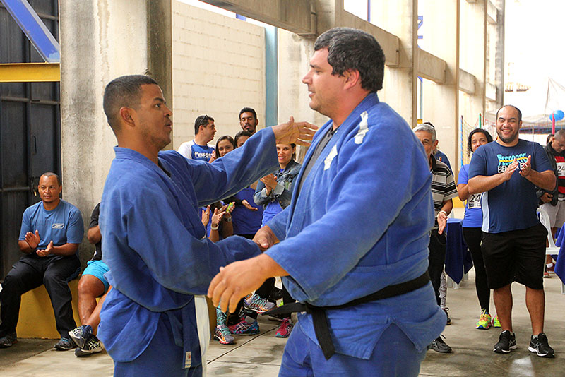 Os profissionais de Educação Física participaram de corrida, futebol, assistiram apresentação de alunos portadores de necessidades especiais das aulas de jiu-jítsu, dança, defesa pessoal e aula de zumba.