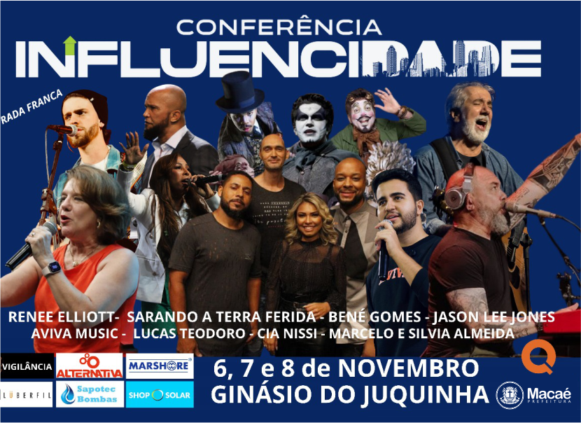 Macaé recebe, nos dias 6, 7 e 8 de novembro, a 9ª Conferência Influencidade, com o tema “Permita Deus Influenciar a Sua Vida”. O evento, que reunirá grandes nomes da música e do ministério cristão, acontecerá no Ginásio do Juquinha, com entrada gratuita. A programação conta com o apoio da Prefeitura de Macaé.