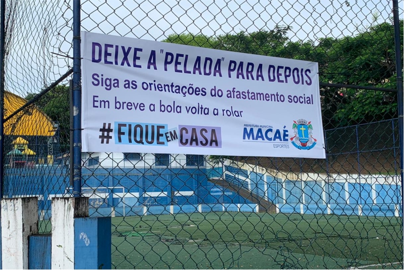 A faixa leva a mensagem “Deixe a pelada para depois. Siga as orientações de afastamento social. Em breve a bola volta a rolar”, com a #fiqueemcasa. “Estivemos em quadras e campos dos principais bairros. A ideia é tentar fazer que as pessoas entendam que tudo vai passar e a bola vai voltar a rolar”, frisa o secretário.
