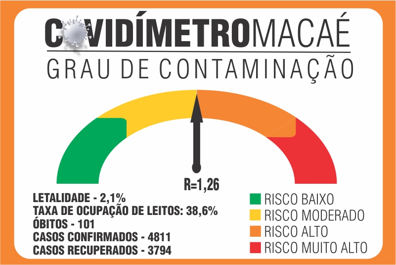 As taxas do município, neste domingo (19) são: de ocupação de leitos terapia intensiva SUS Covid-19, 38,6%; de reprodução do vírus 1,26; e de letalidade 2,1%.