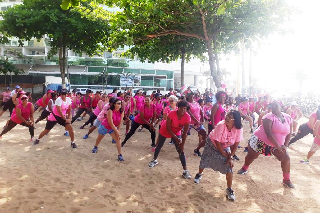 Vestido de rosa, o público - em sua maioria participante das atividades oferecidas nos polos do projeto Movimente-se - mostrou que fazer atividade física regularmente é essencial para se ter um estilo de vida mais saudável.