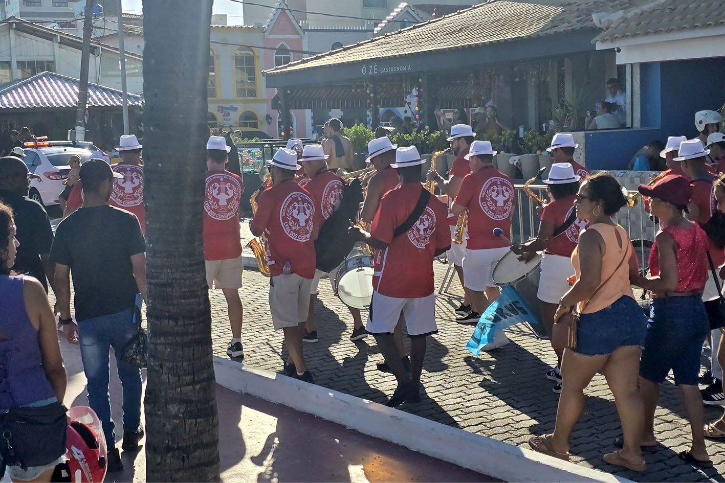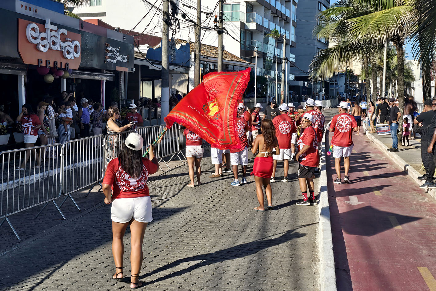 Com o intuito de conservar a tradição cultural, o cortejo passou pela orla dos Cavaleiros chamando a atenção de todos que estavam nos bares e no calçadão.