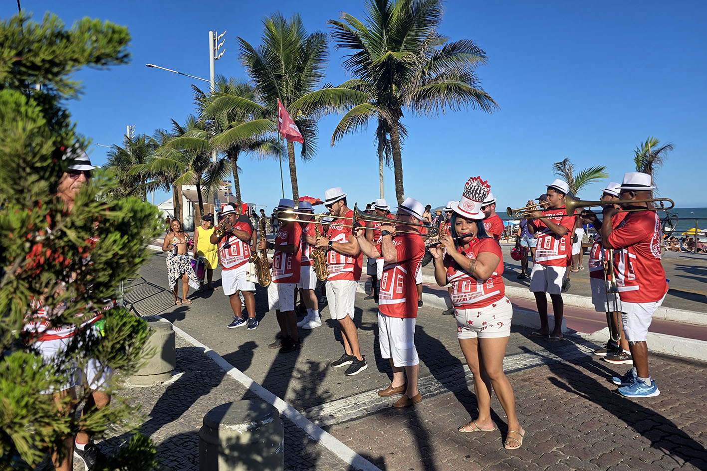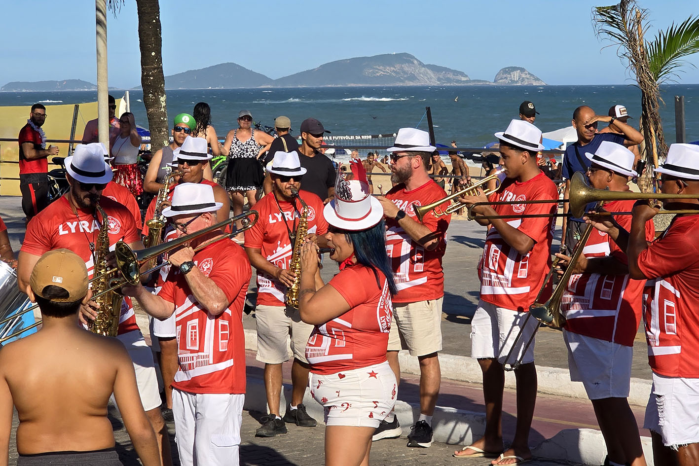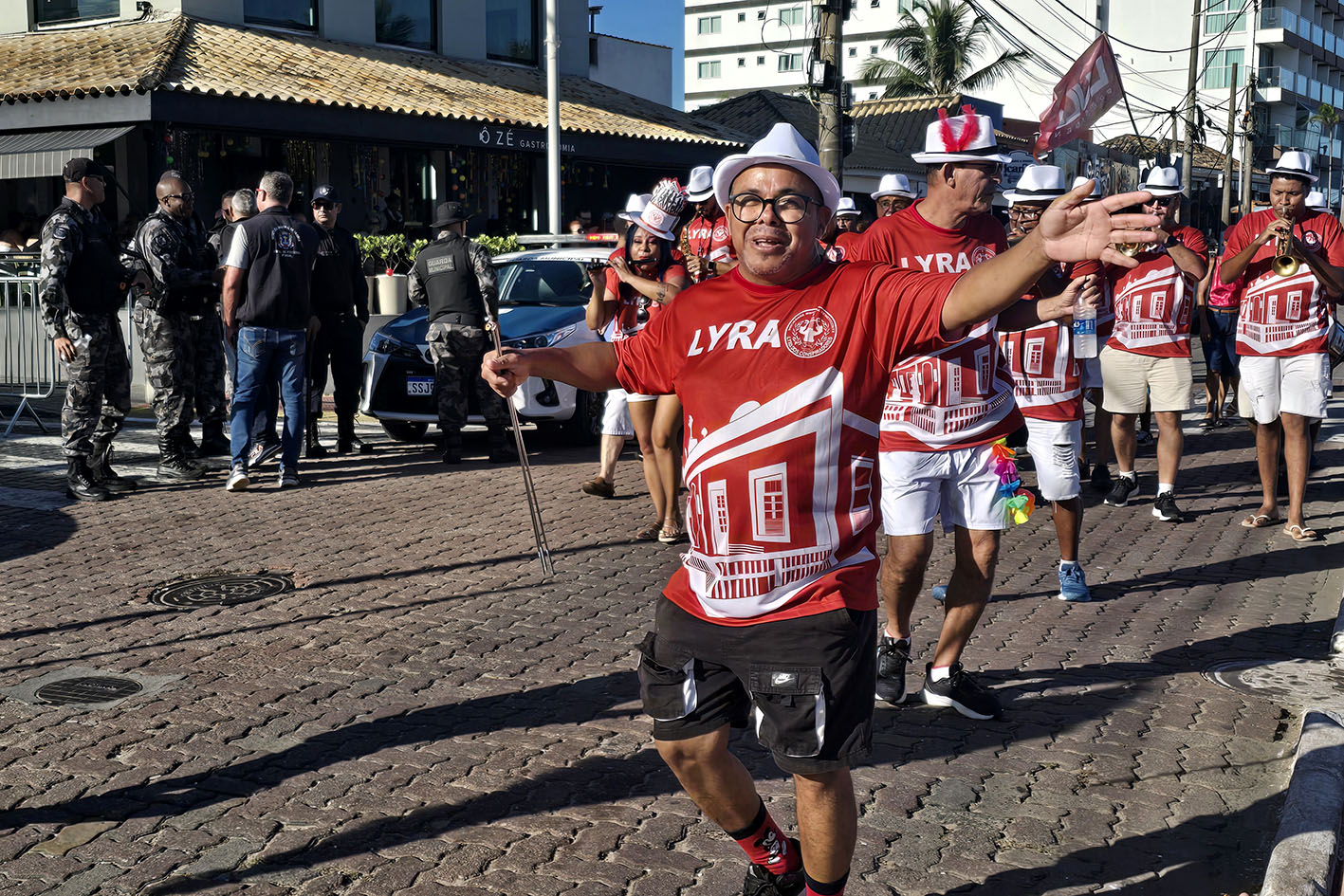 O Cortejo Charanga Lyra se apresentou na tarde deste domingo (15), animando a todos que estavam na Praia dos Cavaleiros para curtir o terceiro dia de Carnaval da Alegria em Macaé.