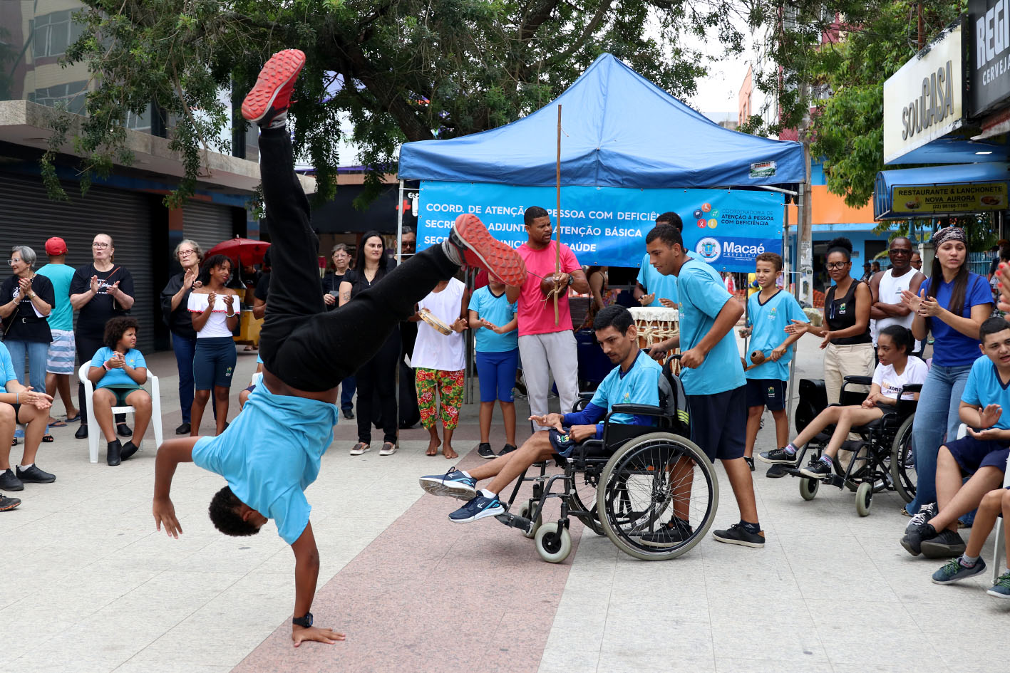 Apresentações culturais e esportivas chamaram a atenção de quem passou pelo Calçadão da Avenida Rui Barbosa, na manhã desta quarta-feira (20). Em alusão ao Dia Nacional de Luta da Pessoa com Deficiência (21 de setembro), a Coordenadoria de Atenção à Pessoa com Deficiência, vinculada à Secretaria Adjunta de Atenção Básica da Secretaria de Saúde, promoveu uma série de ações envolvendo alunos e assistidos pela Apae e integrantes da Oficina Projeto Contos e Cantos do Centro de Convivência e Cultura Benedicto Lacerda, vinculado ao Programa de Saúde Mental.