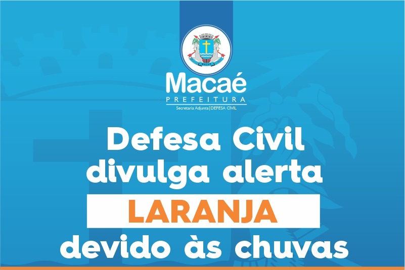 A Secretaria Adjunta de Defesa Civil de Macaé pede atenção e informa que, de acordo com o Instituto Nacional de Meteorologia (INMET), até às 11h de quarta-feira (20), há previsão de rajadas de vento moderadas e alerta laranja para acumulados de chuva até 50mm/h ou 60mm.