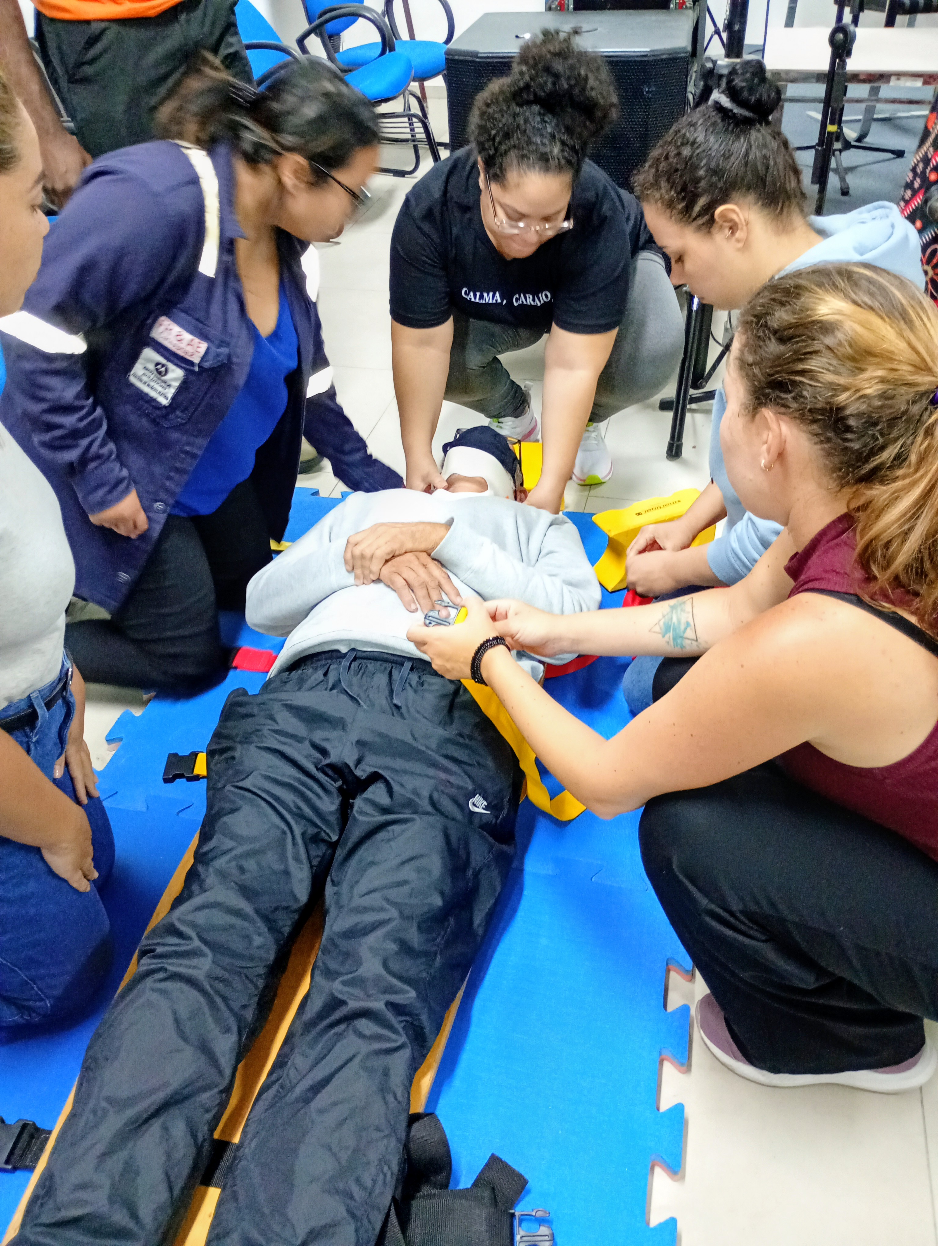 Durante a atividade, os voluntários puderam simular diferentes situações de emergência e aplicar as técnicas já vistas na parte teórica do curso
