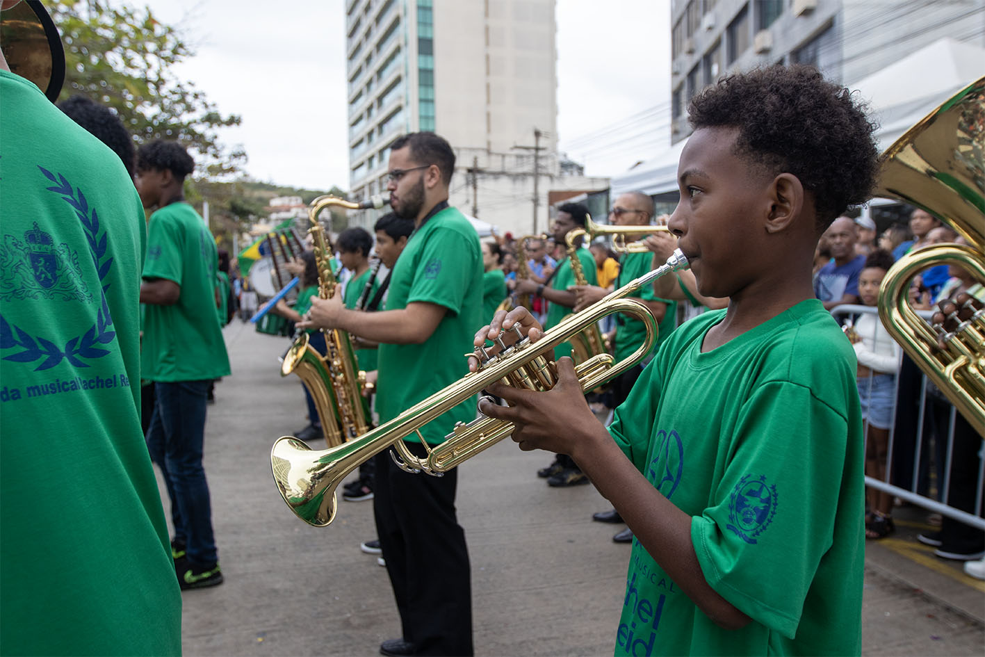 ‘Que tons e sons cabem no meu mundo pela paz?’ é tema do ato de civismo, que lotou a Praia de Imbetiba com pelotões civis e militares