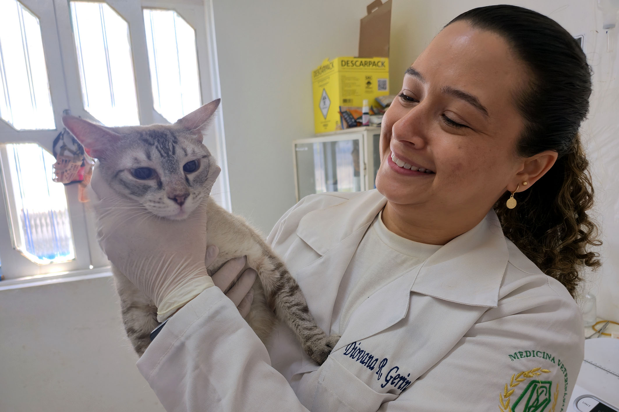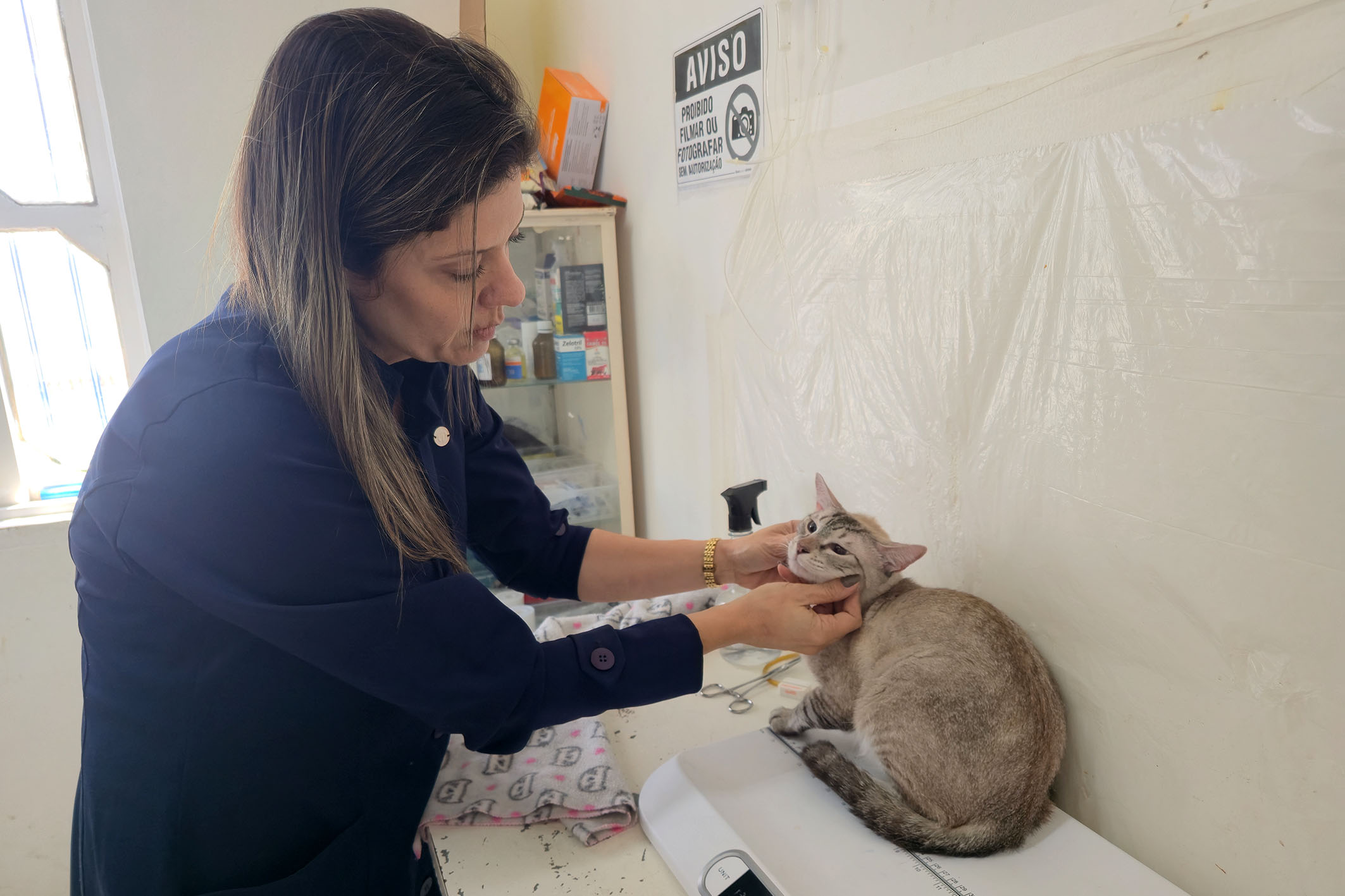 Maria Lúcia Barbosa também teve seu “ Tontom” examinado. “Ele já passou por vários tratamentos e essa ferida aberta nada de curar. Temos receio. Amo meu gato. O Dia D é muito importante. Estou grata”, contou..Já Giselli Ribeiro levou Viego e Blue para serem atendidos. Ela recebeu orientações e tirou dúvidas sobre a doença, cujas características não aparecem nos seus felinos.