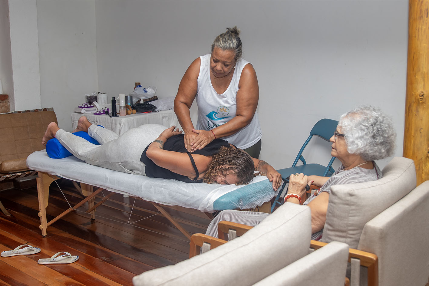 A terapeuta Magda Delfino, conta que faz uma anamnese para saber qual ponto atingir.