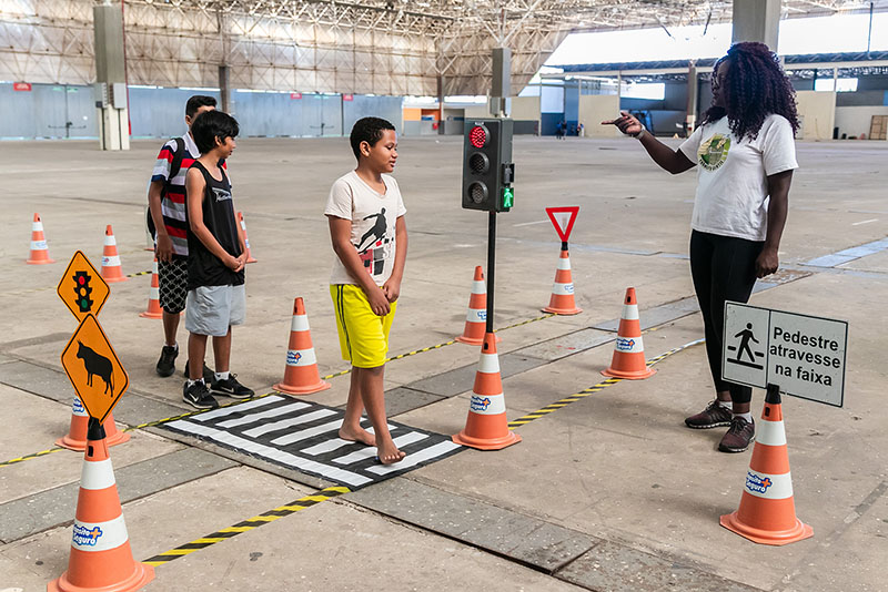“Neste período de férias as crianças brincam mais na rua, soltando pipa ou jogando bola, por isso é importante ainda mais a orientação sobre as regras de trânsito, estar atento às placas, à travessia segura e respeitar a sinalização. Durante a simulação da via, onde elas percorrem o circuito, possibilitamos à criança observar o trajeto e aprender melhor as regras de trânsito”, pontua a agente de trânsito Josiana Wilme.